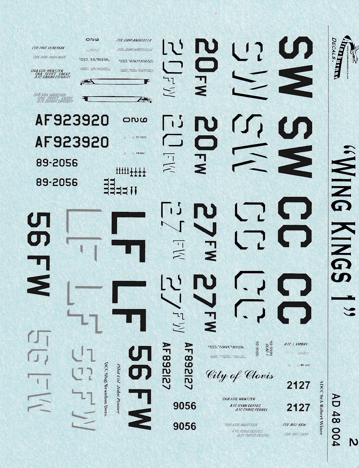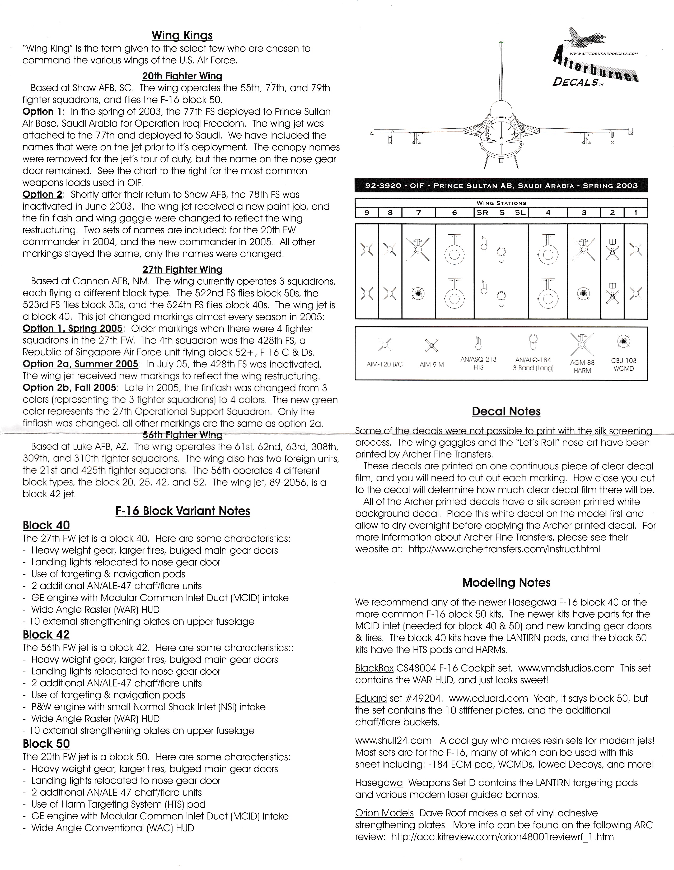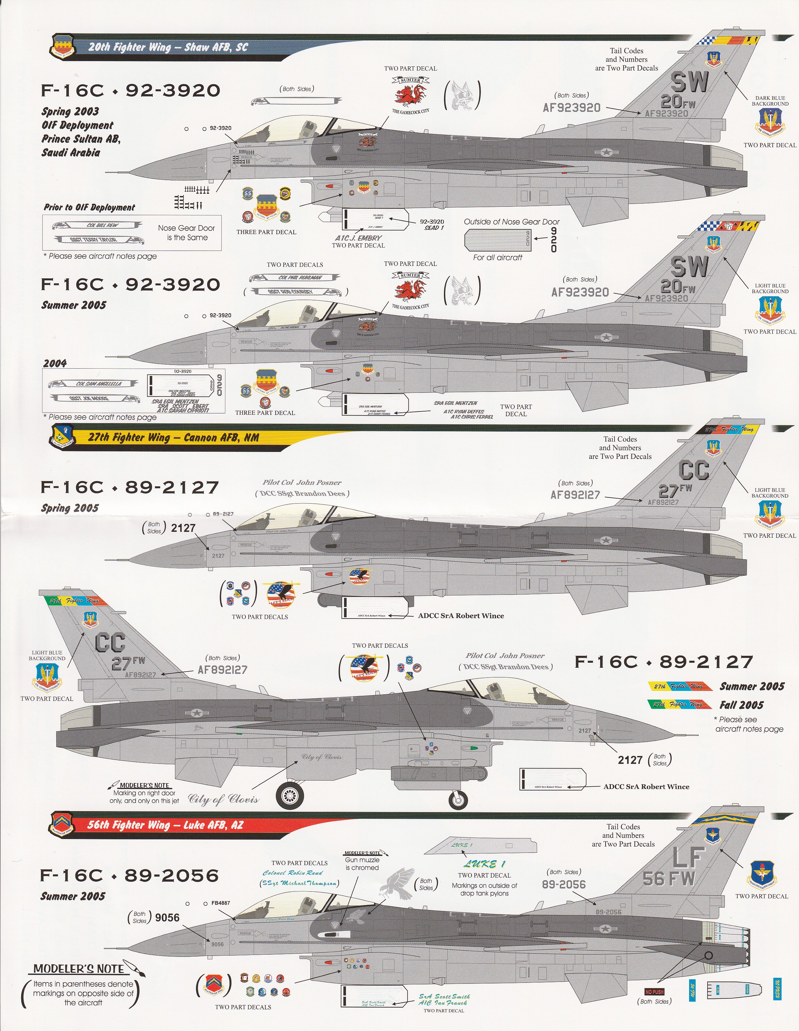 This is a great sheet for F-16C'js and cover WIng CO's aircraft from the 20th, 27th and 56th Fighter Wings.