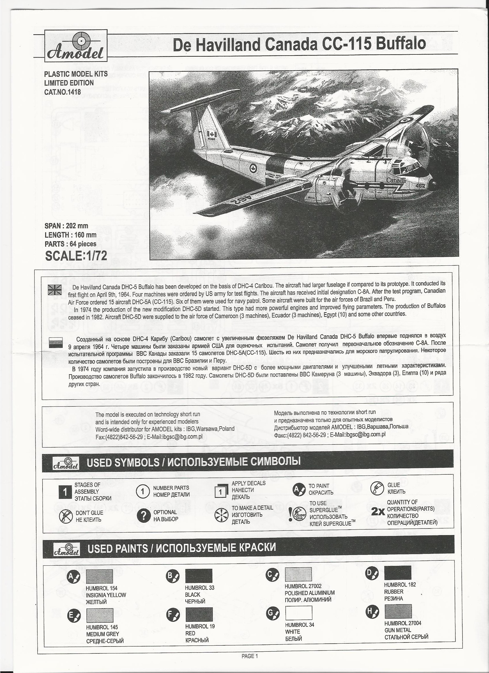 1/144 Amodel DHC-5 Buffalo