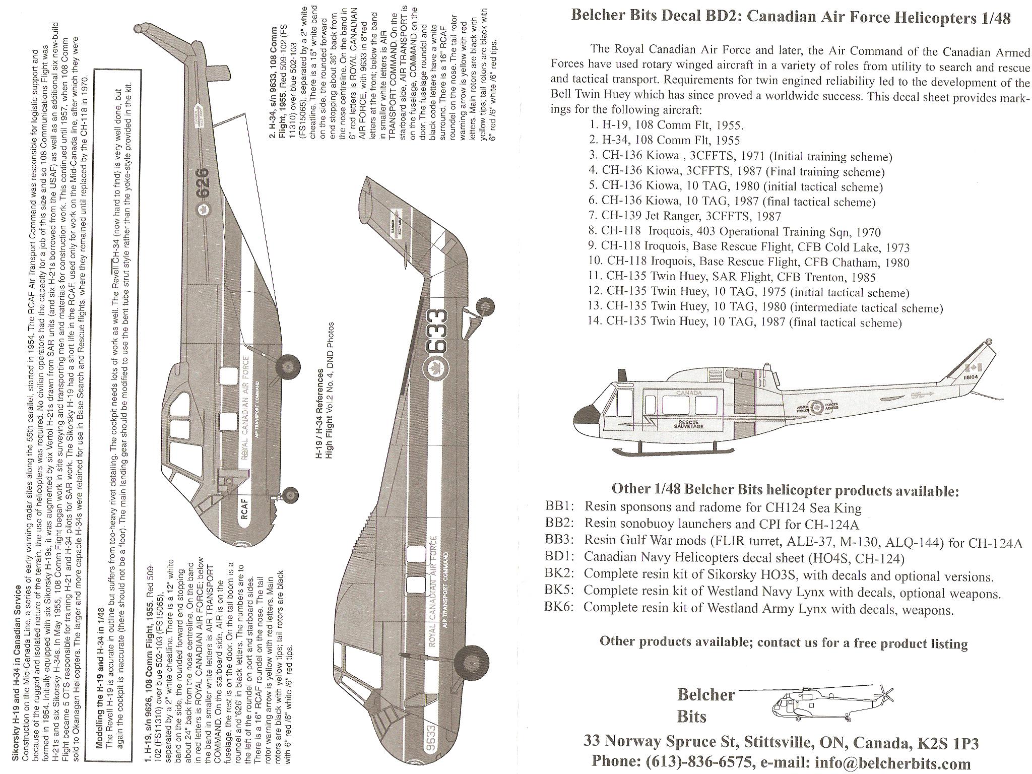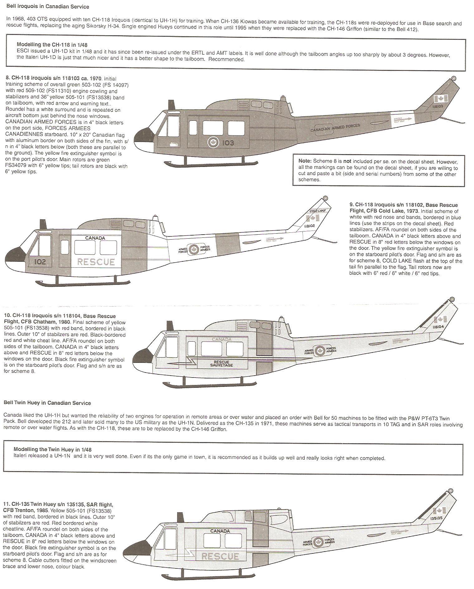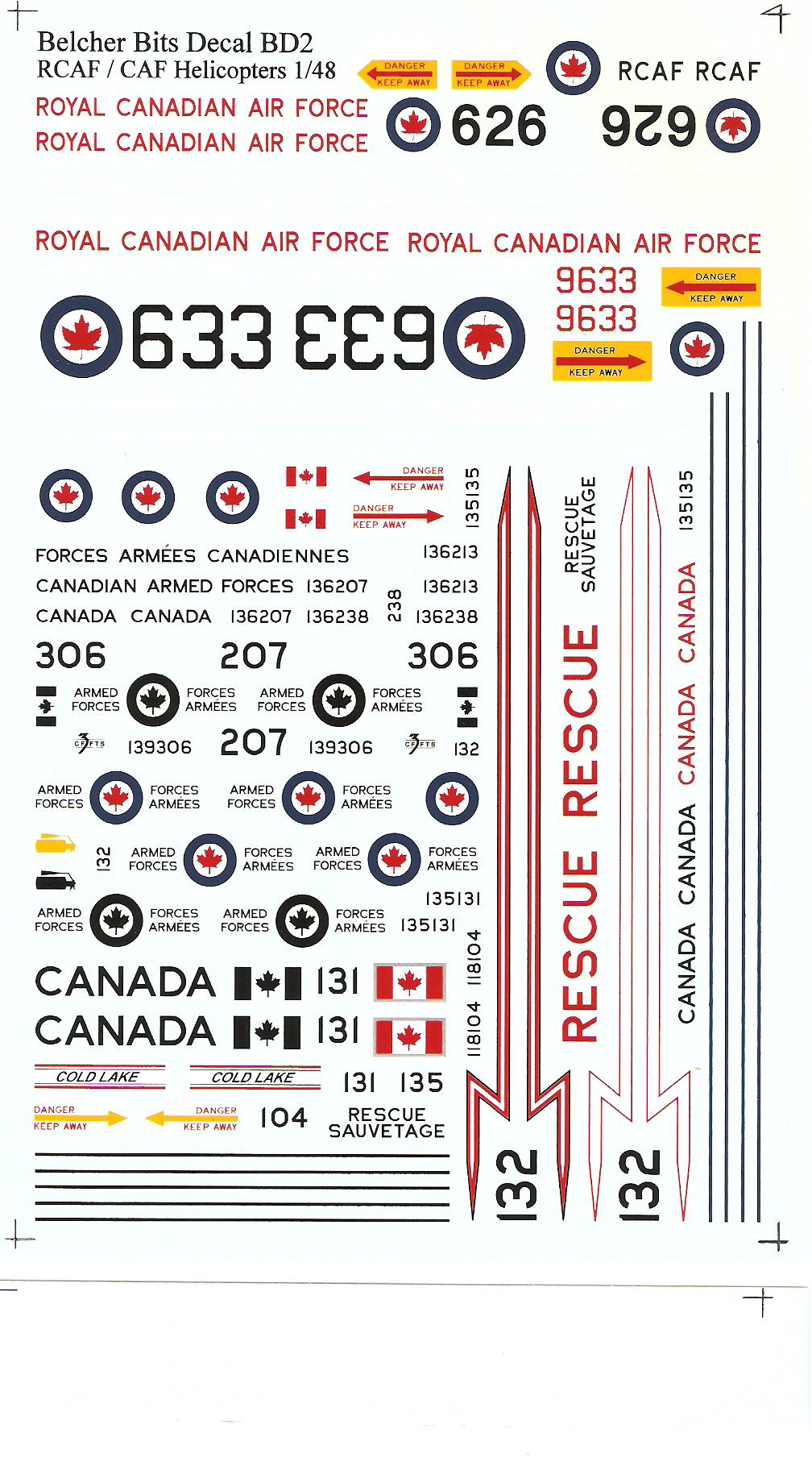 This is a very comprehensive decals set for Canadian Helicopters. It includes decals for 6 types of helicopters.