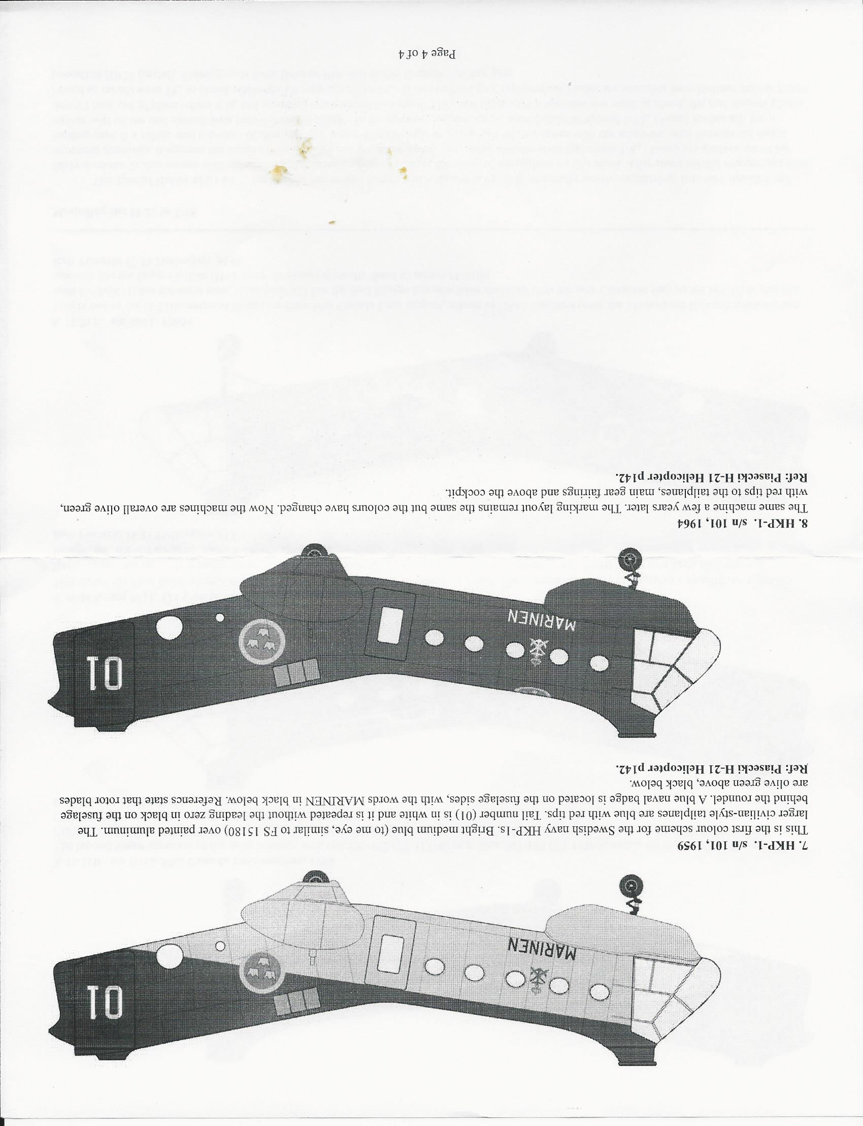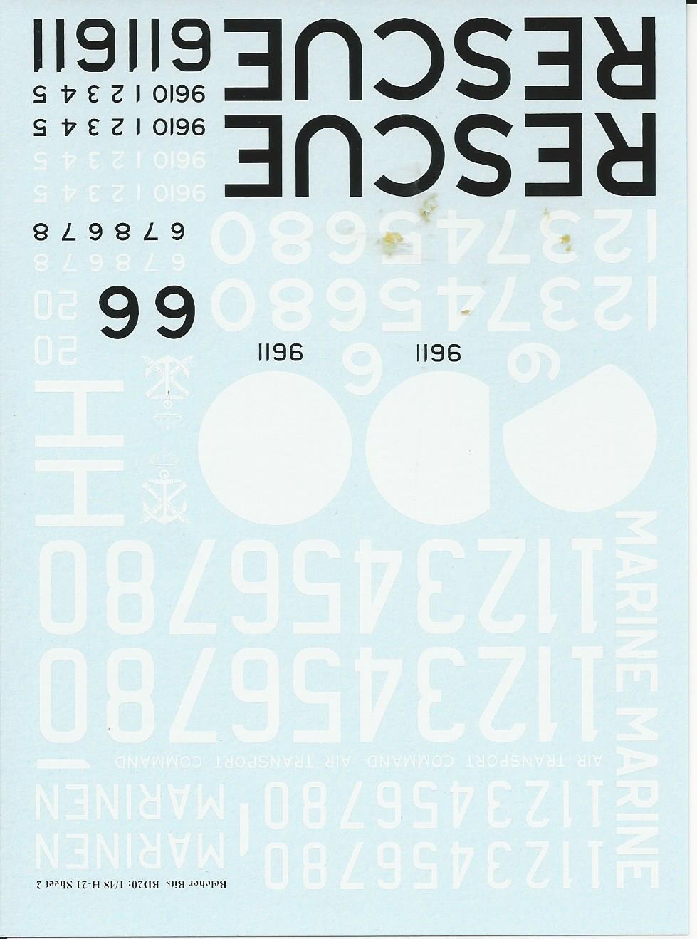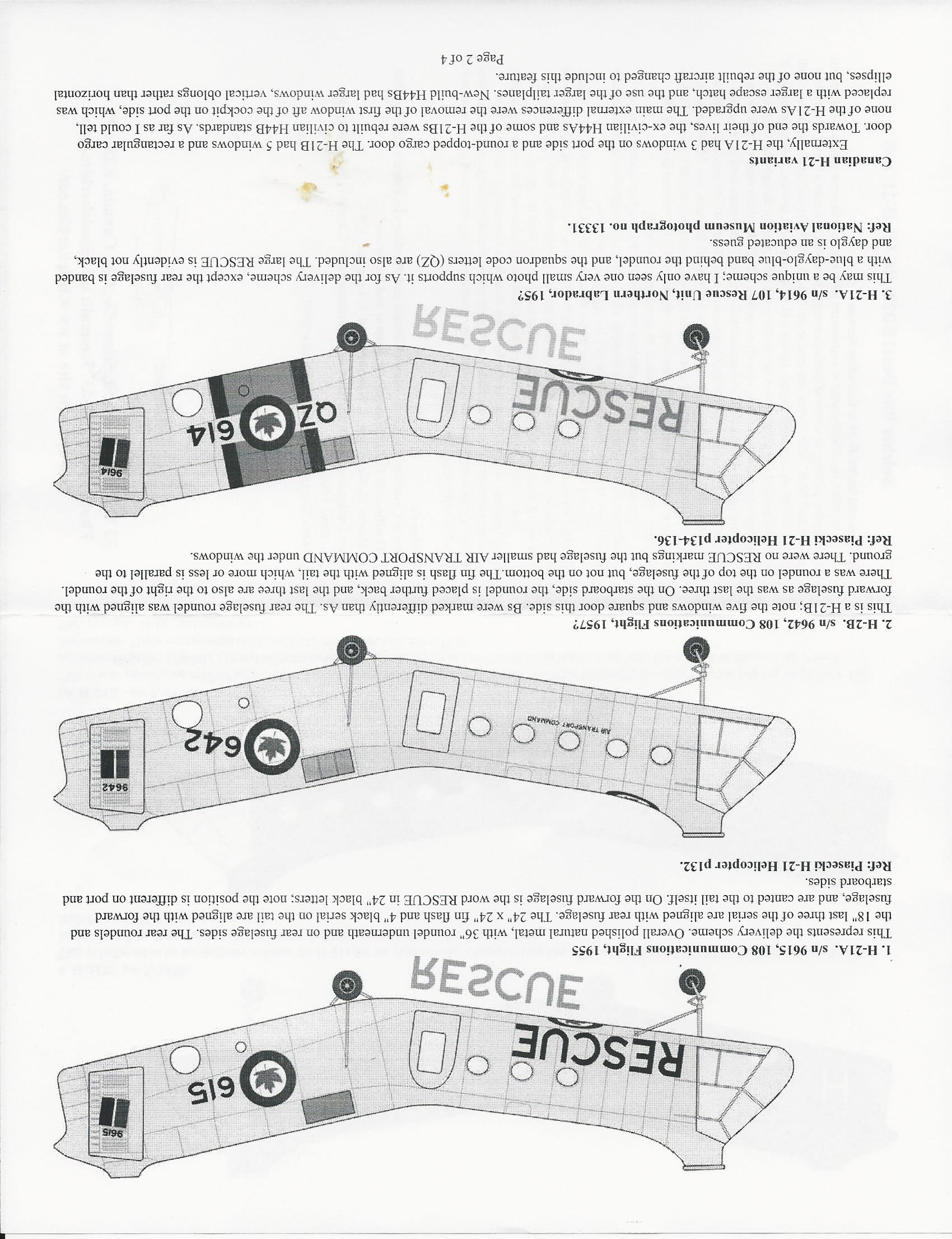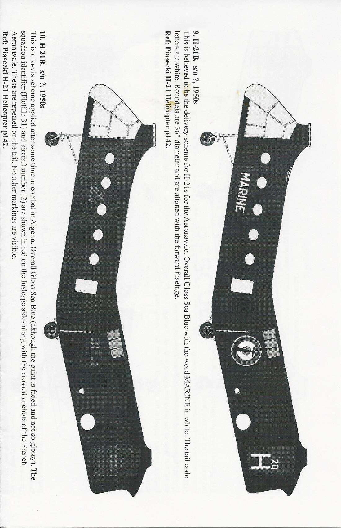 This is a very comprehensive decals set for the 1/48 H-21. It includes decals for RCAF, French Navy and Swedish Navy.. There are enough markings to make