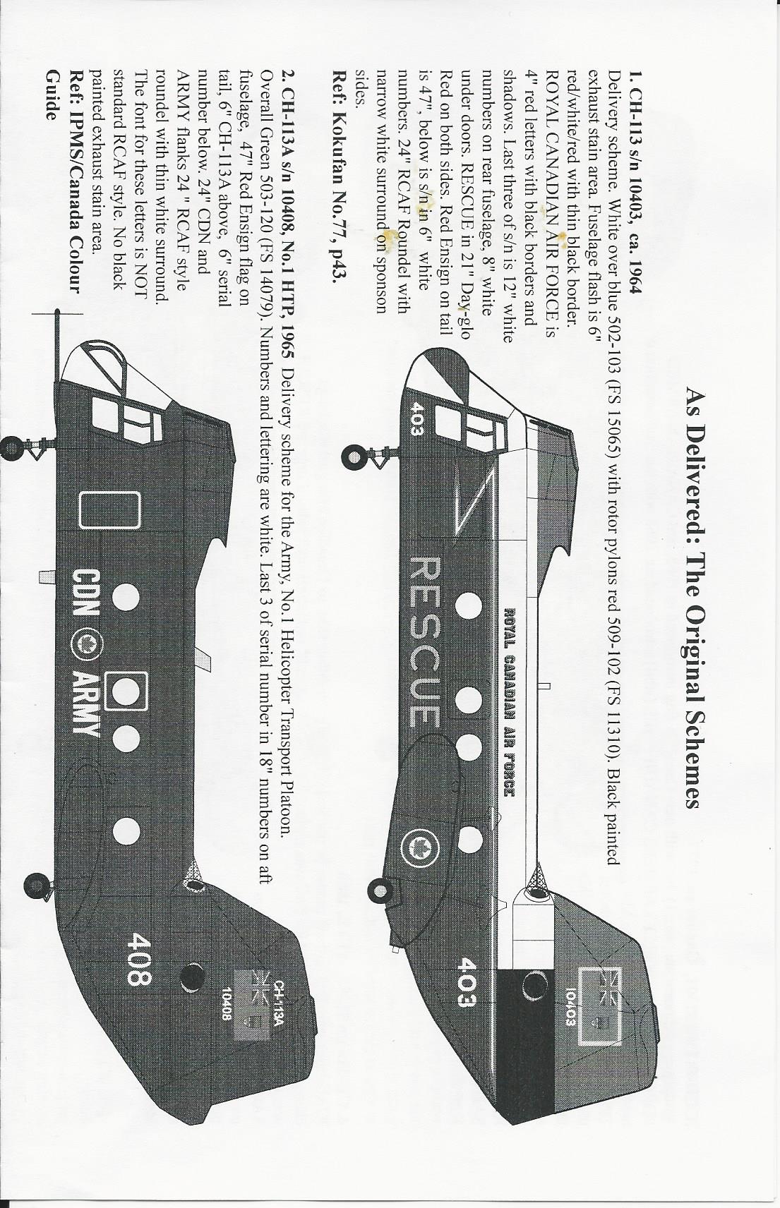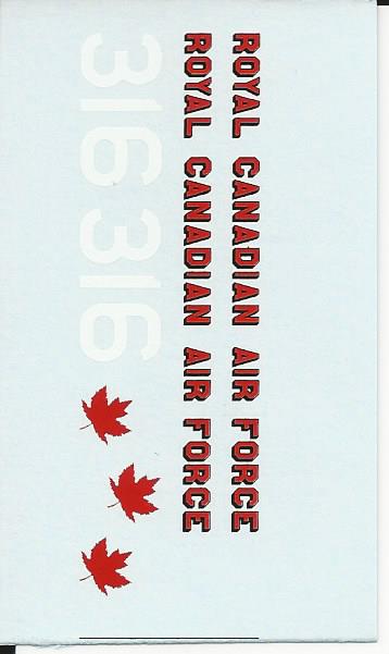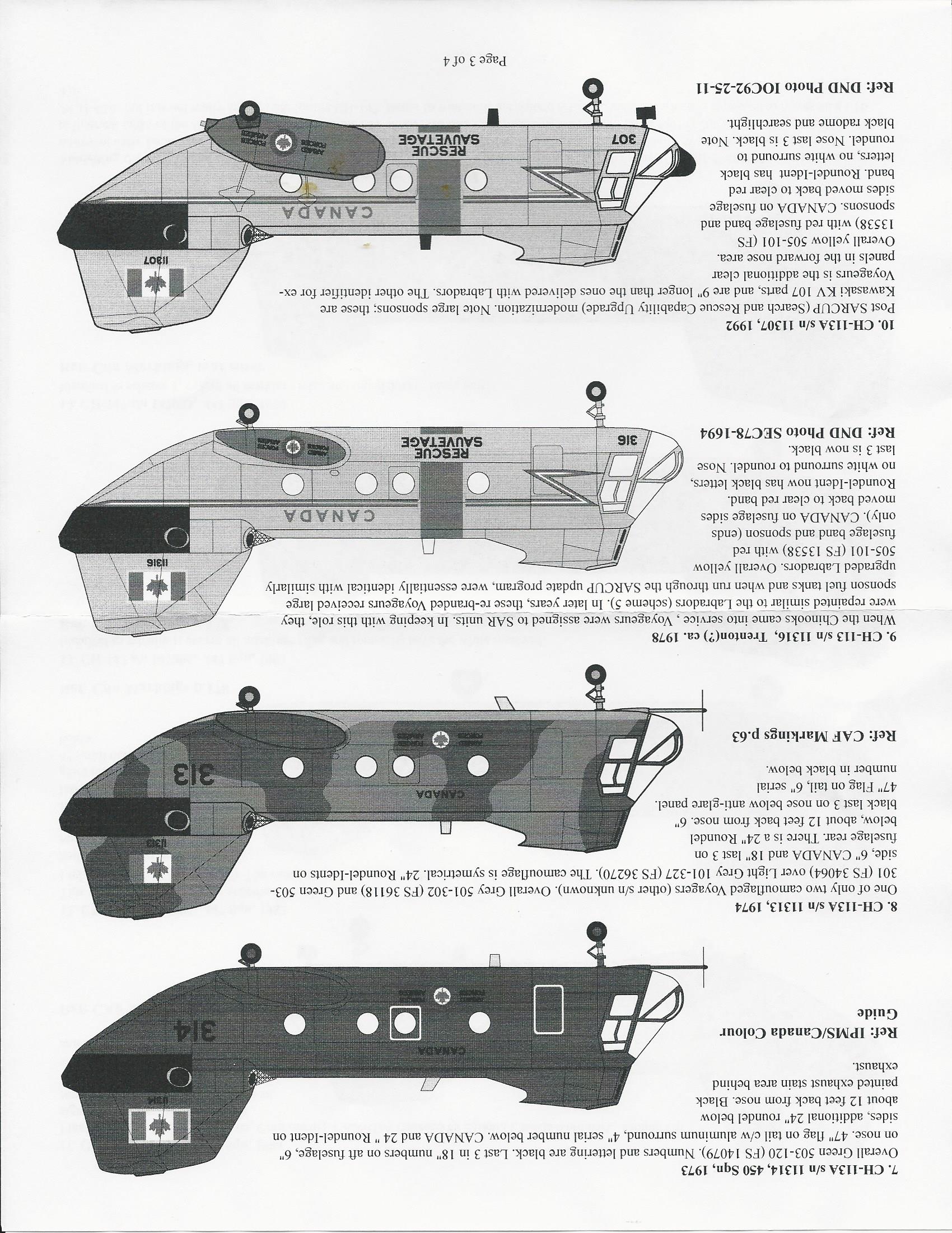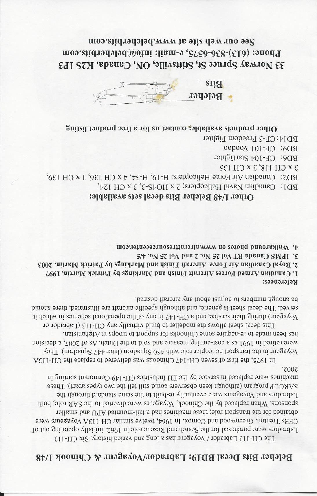 This is a very comprehensive decals set for the 1/48 labrador/Voyageur and Chinook. It includes decals for RCAF, and CDN Army. There are enough markings to make