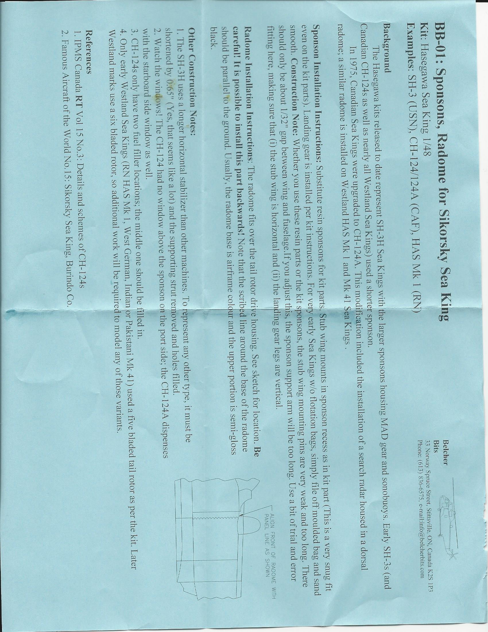This is a resin kits allows you to have the shorter sponsons as seen on early Sea kings and is for the Hasegawa Sea King kit. It includes drop on Sponsons