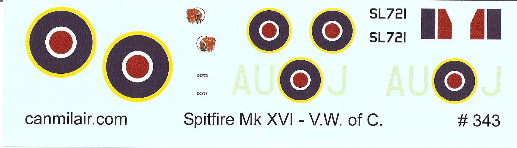 This sheet includes the basic markings for the Vintage Wings of Canada Spitfire Mk XV. This sheet does not include stencils.