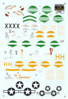 This sheet allows you to build four p-38's: two "H"s, 1 "J" and 1 "L". The decals are cleanly printed. to make sure pictures are in register, the colour is printed as one piece and the black outlines