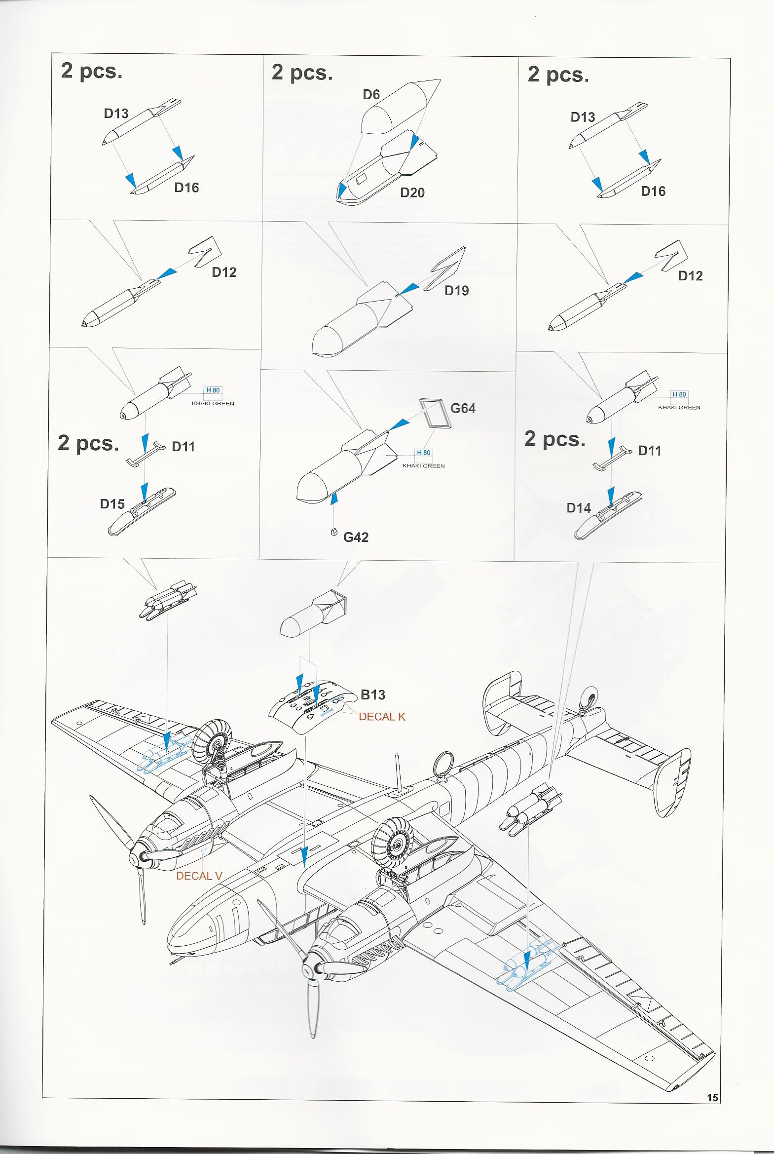 under fuselage and under wing bombs, as well as other unused bombs and weapons and an under fuselage fuel tank.