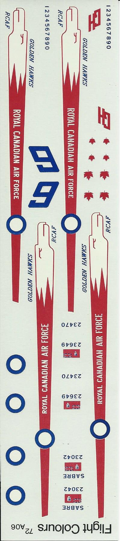 This is an older sheet from Flight Colours that covers Golden Hawk F-86's. There are a few options that allow you to build aircraft throughout the teams history.