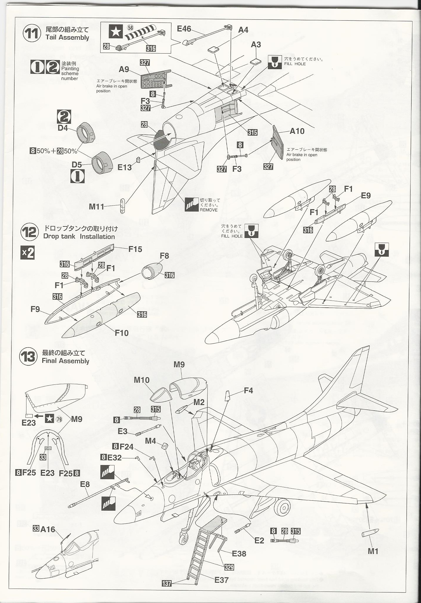 There are two drop tanks and a boarding ladder. There are both types of refueling probe included, although the instruction only show the one type.