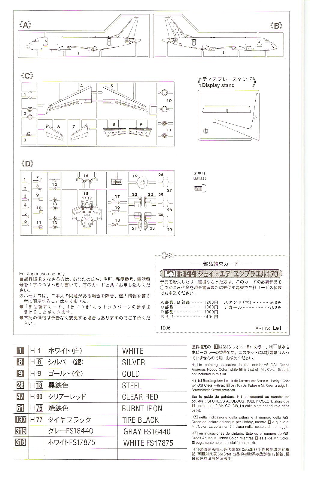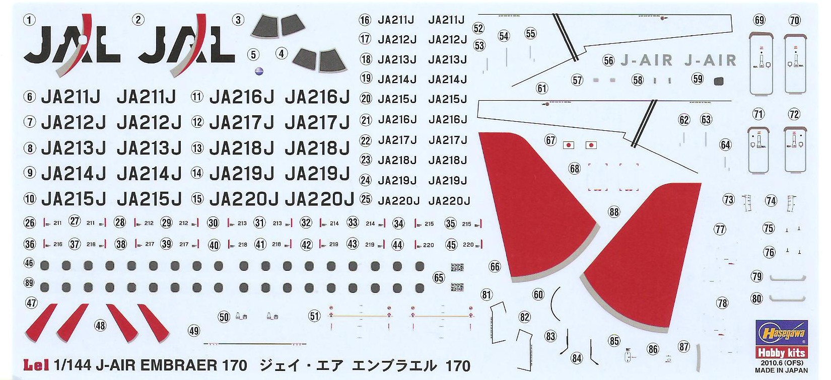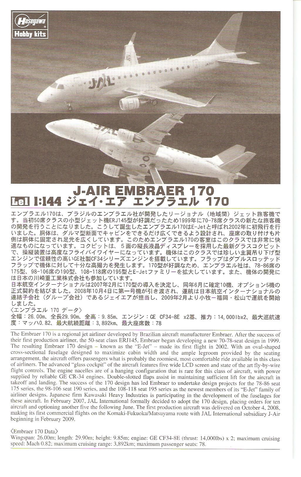This is the only injected plastic model of the E170. as usual for a Hasegawa product this is geared towards the Japanese market and as such only has markings for a JAL bird.