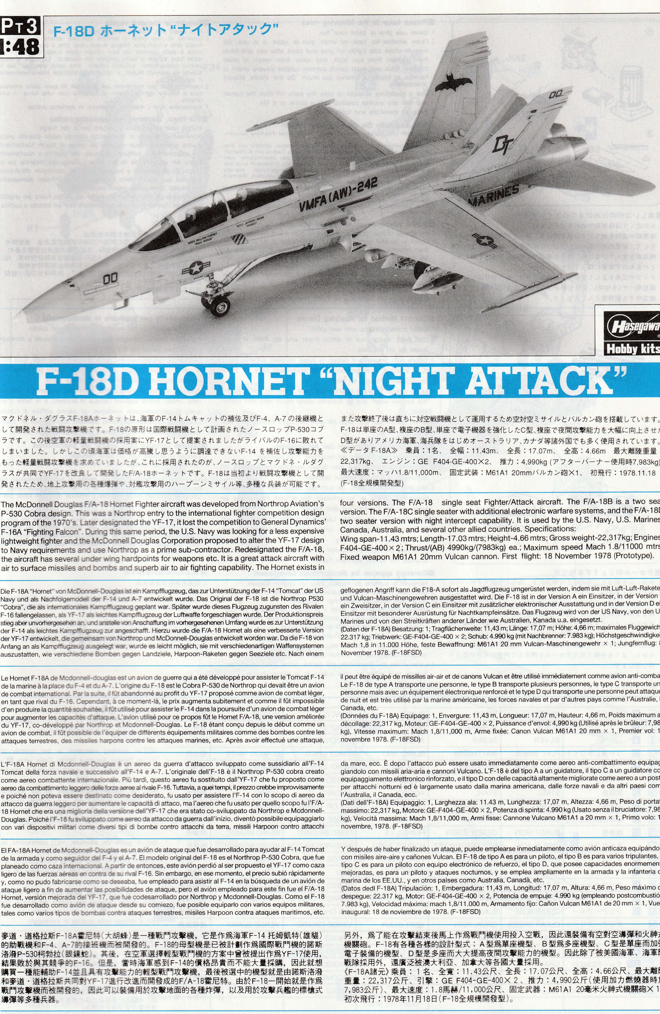 The instructions are for the "Night Attack" version but, as this is a VMFA-224 special boxing, you only get decals for one aircraft, with the