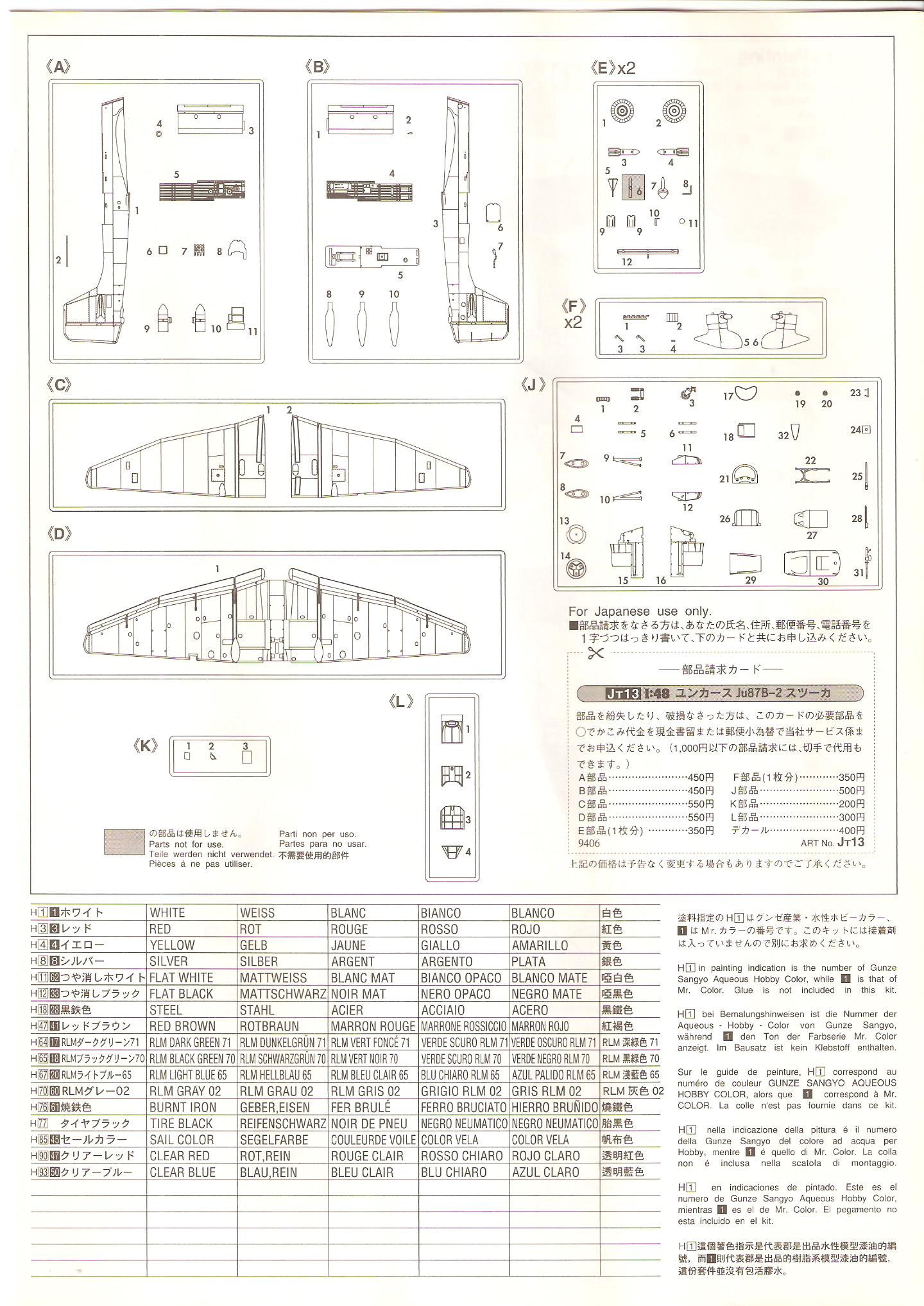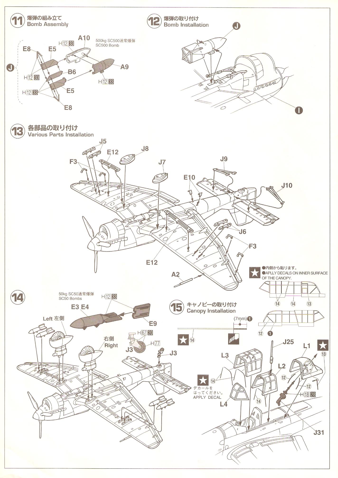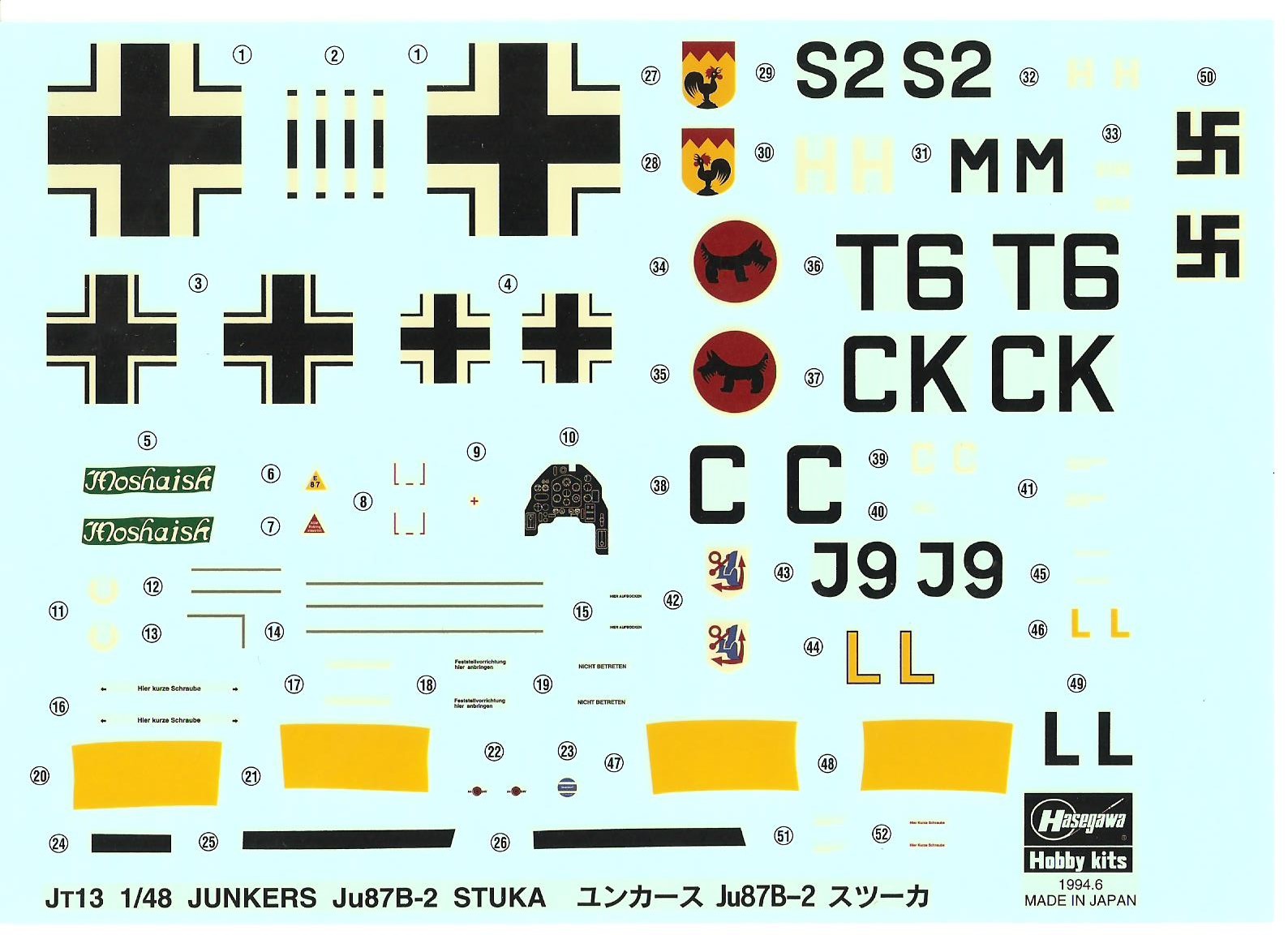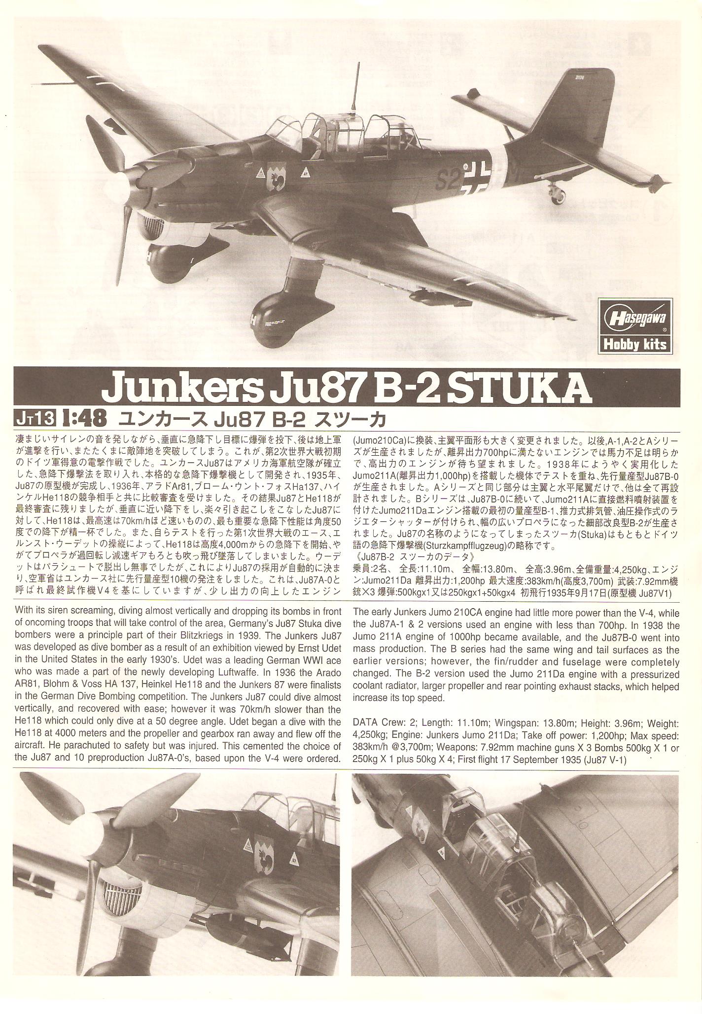 :This model is a great Hasagawa offering offering. Lots of detail, great fit and a very accurate looking Ju-87. Included is a 500KG and 4 50KG bombs.
