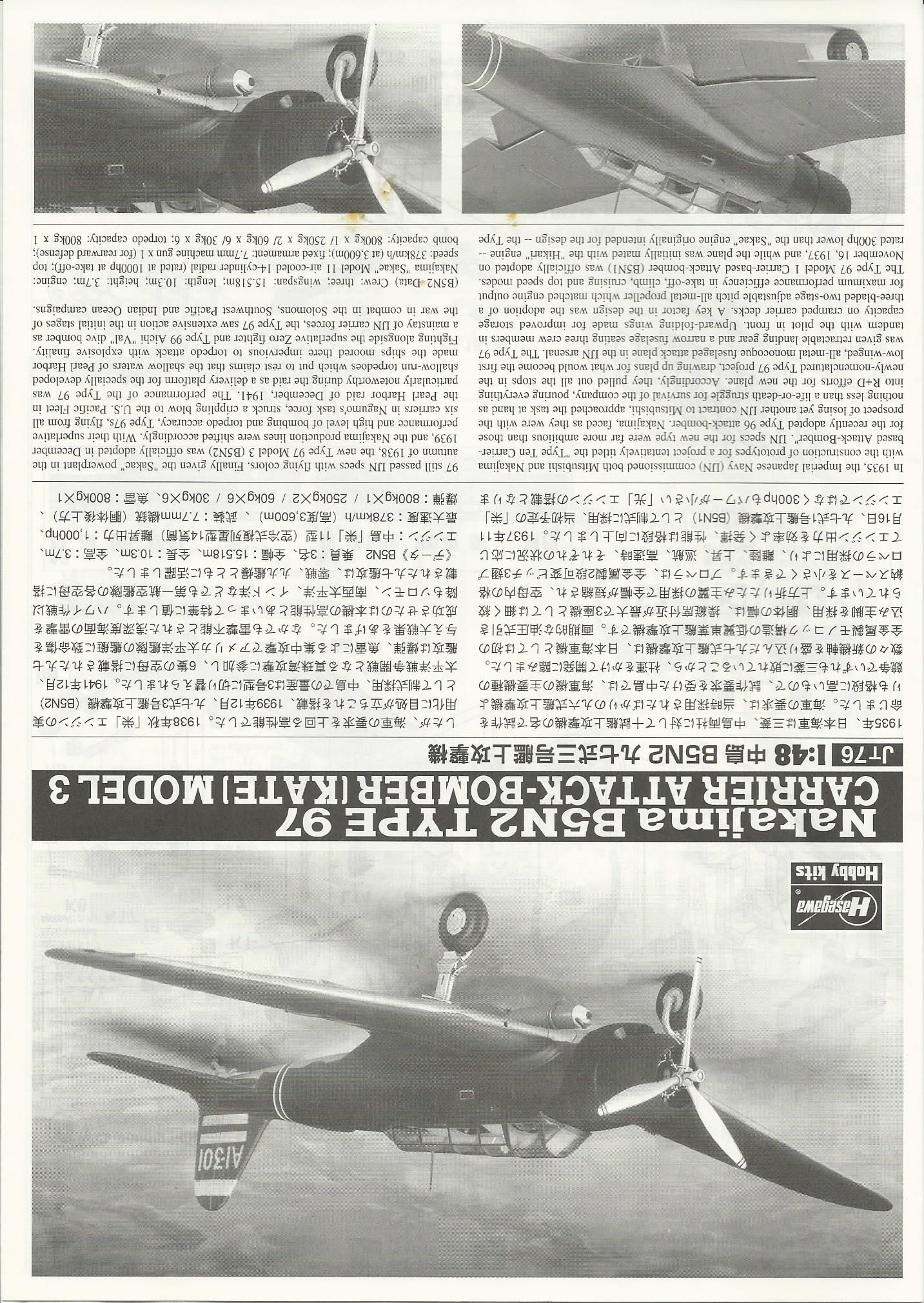 :This model is a another great Hasegawa offering. Lots of detail, great fit and is the only 1/48th kit of the Kate around. Included is a very detailed cockpit, \