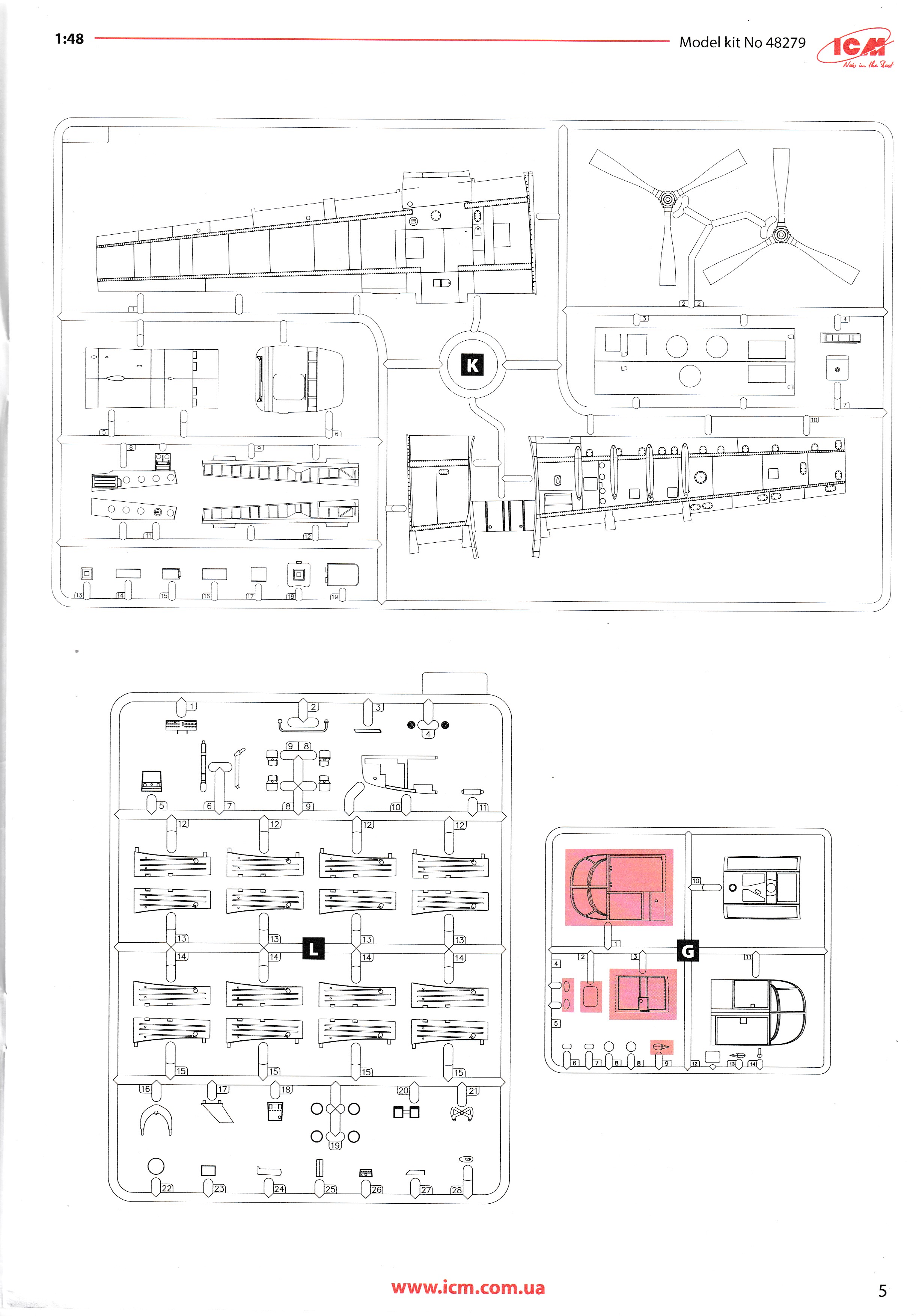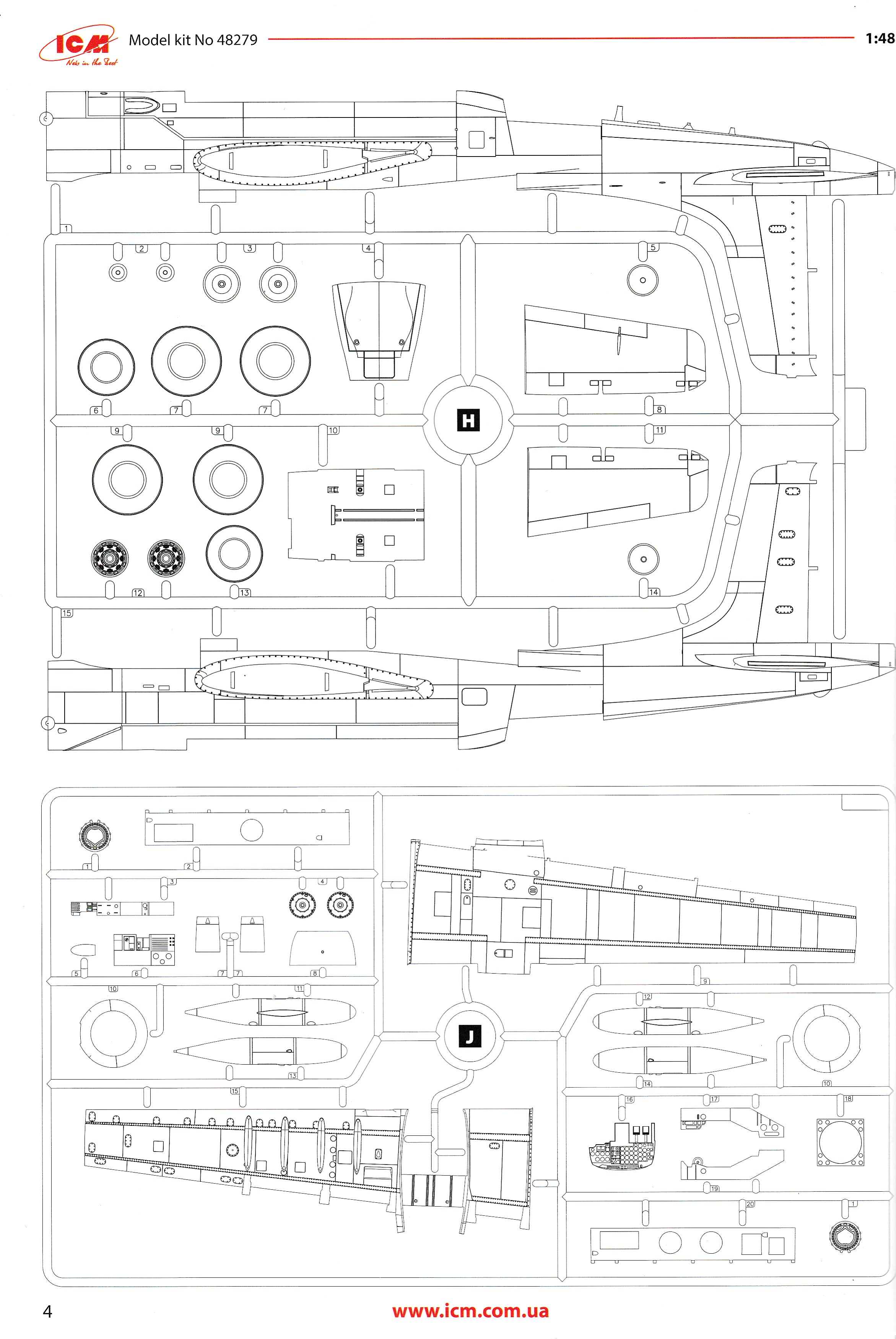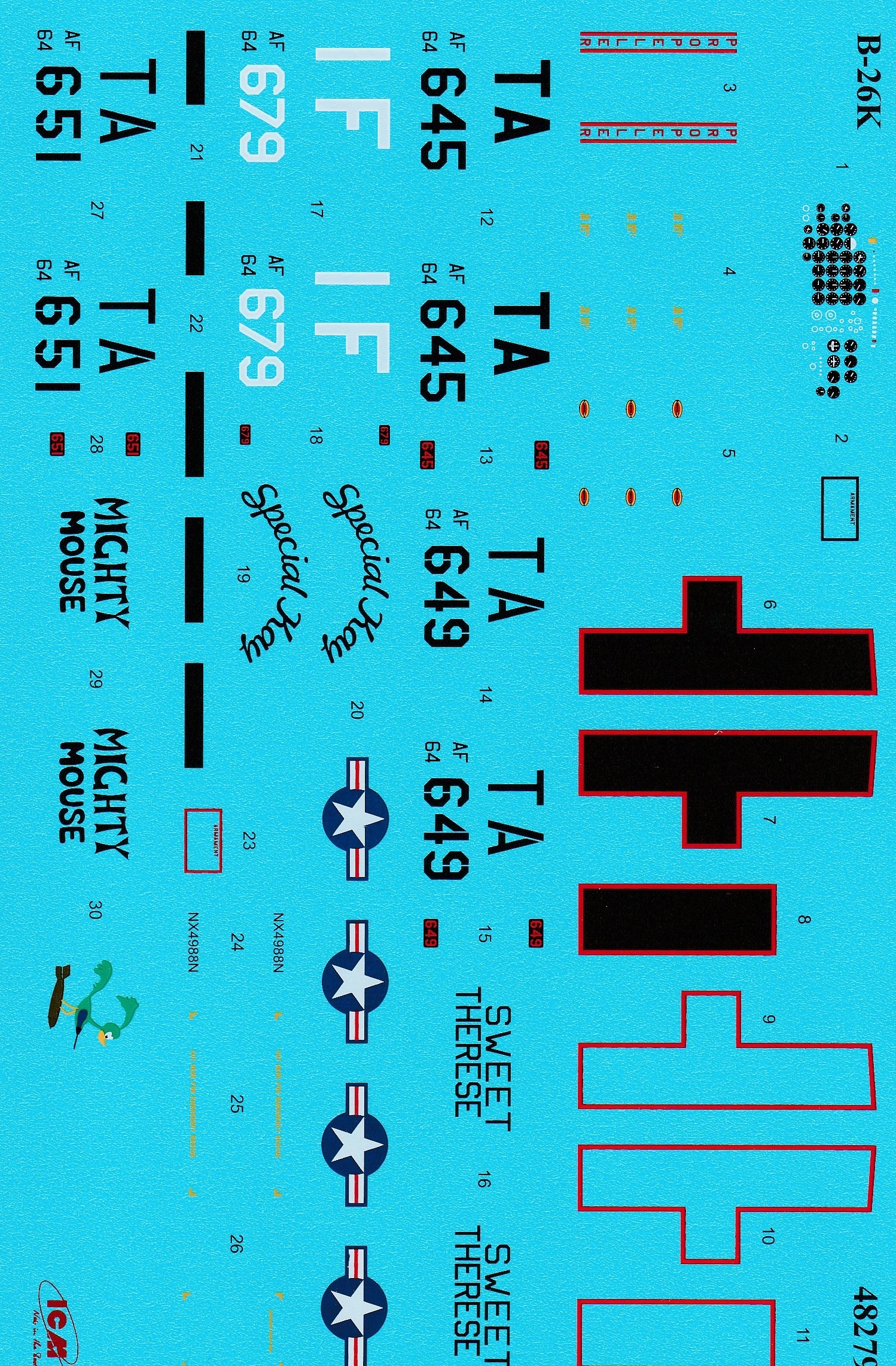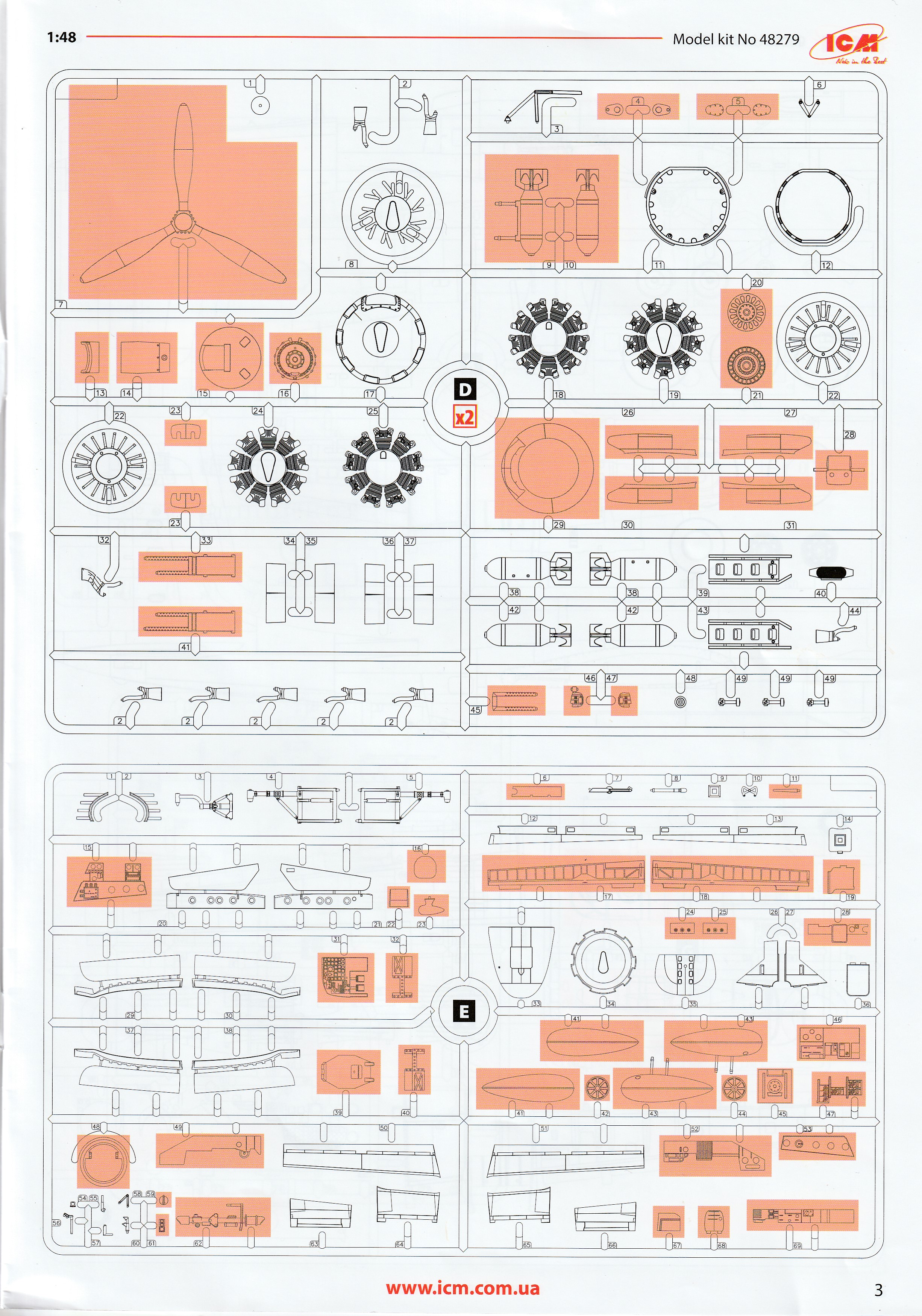 This is the excellent ICM A-26K. it is the only A-26K in 1/48 that can be built without using a conversion kit. Parts are perfectly moulded and are highly detailed. All of the K specific