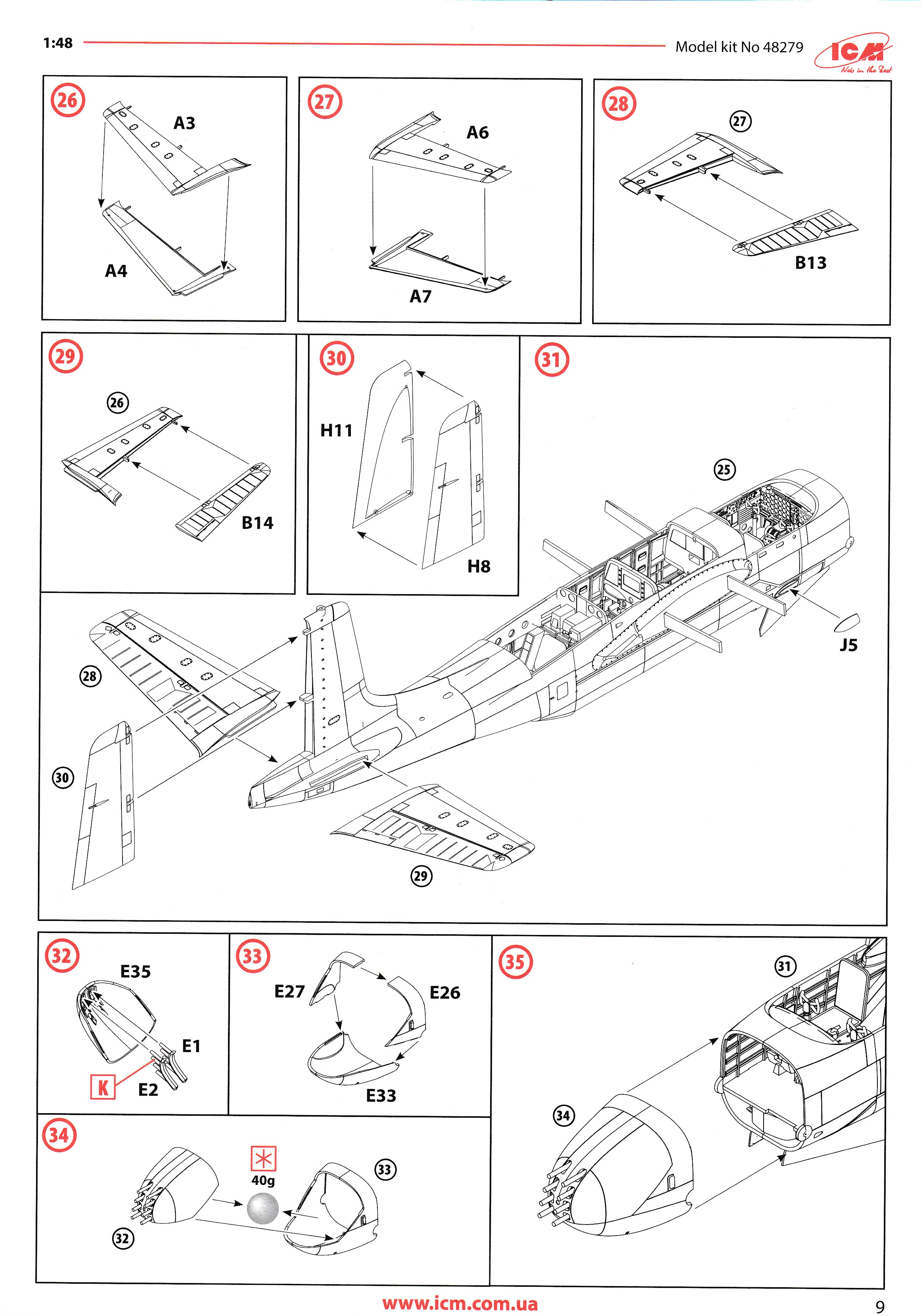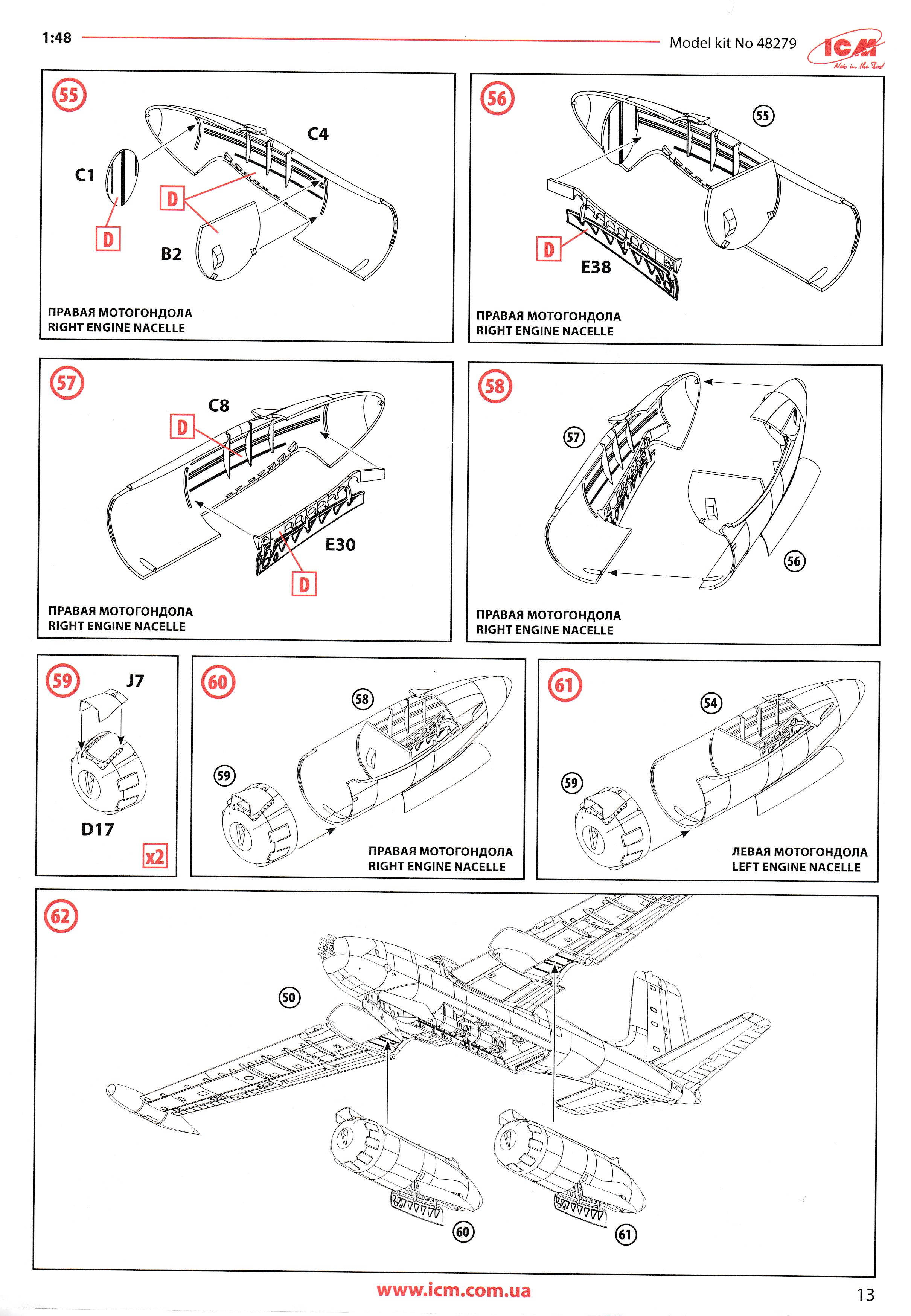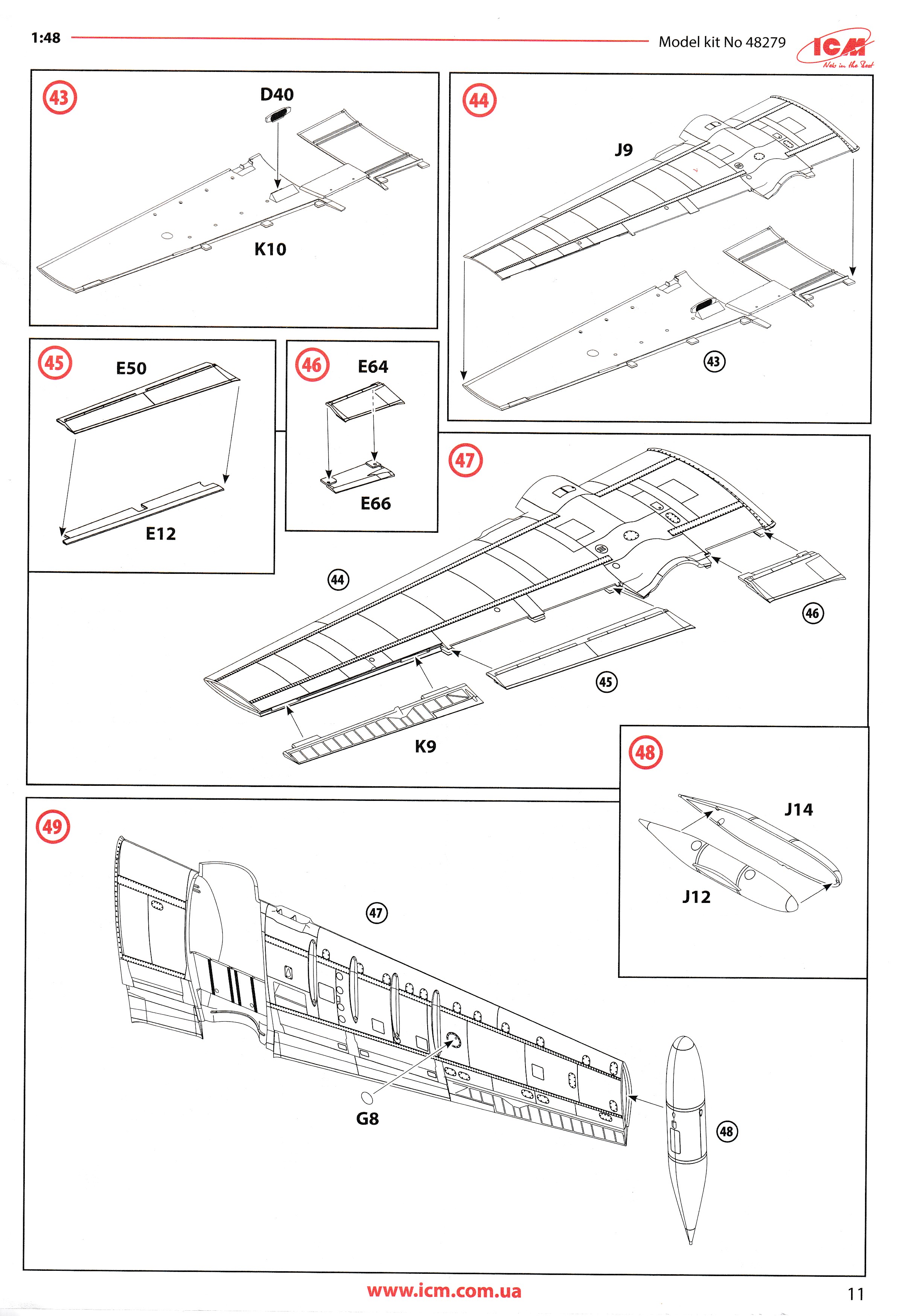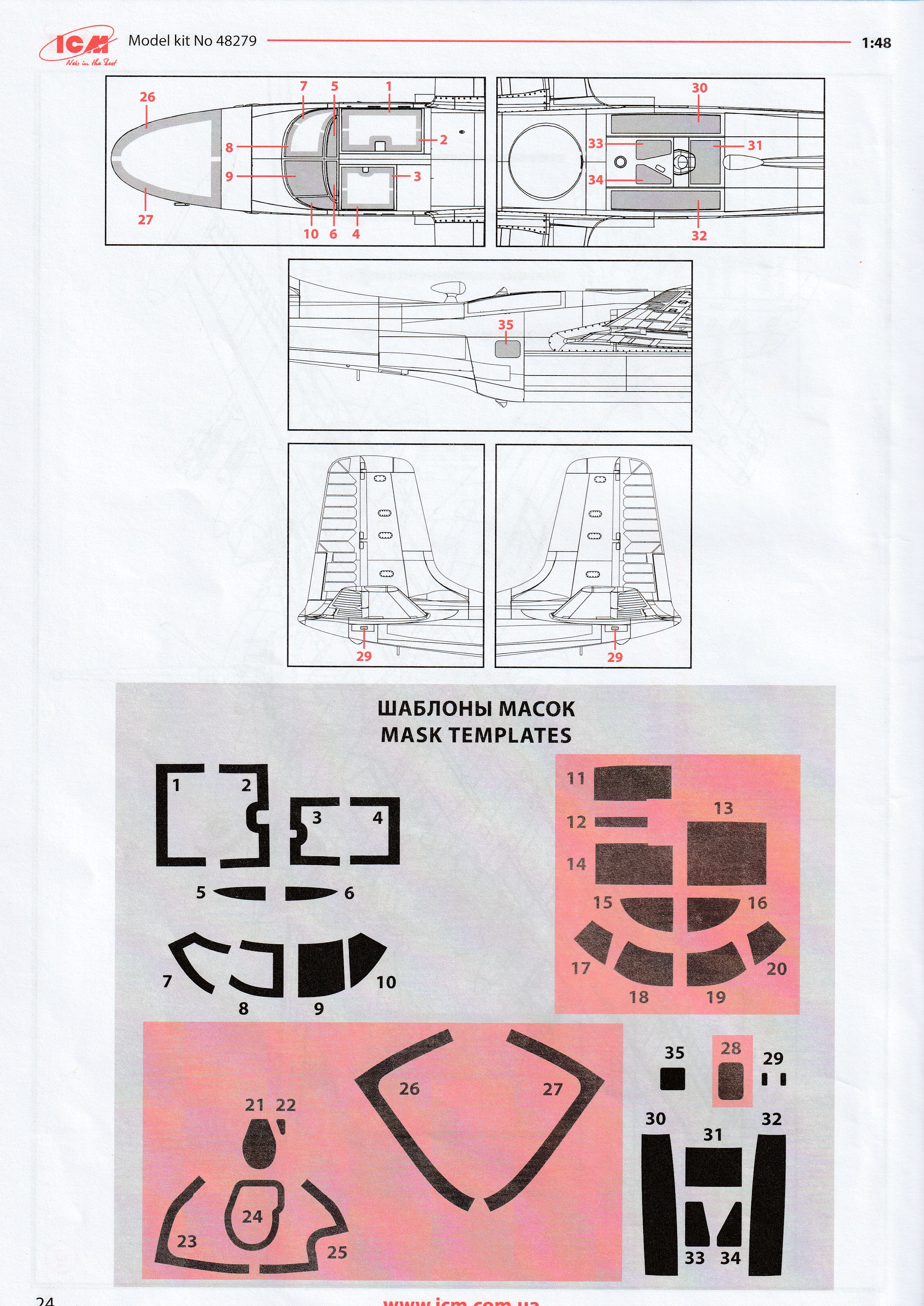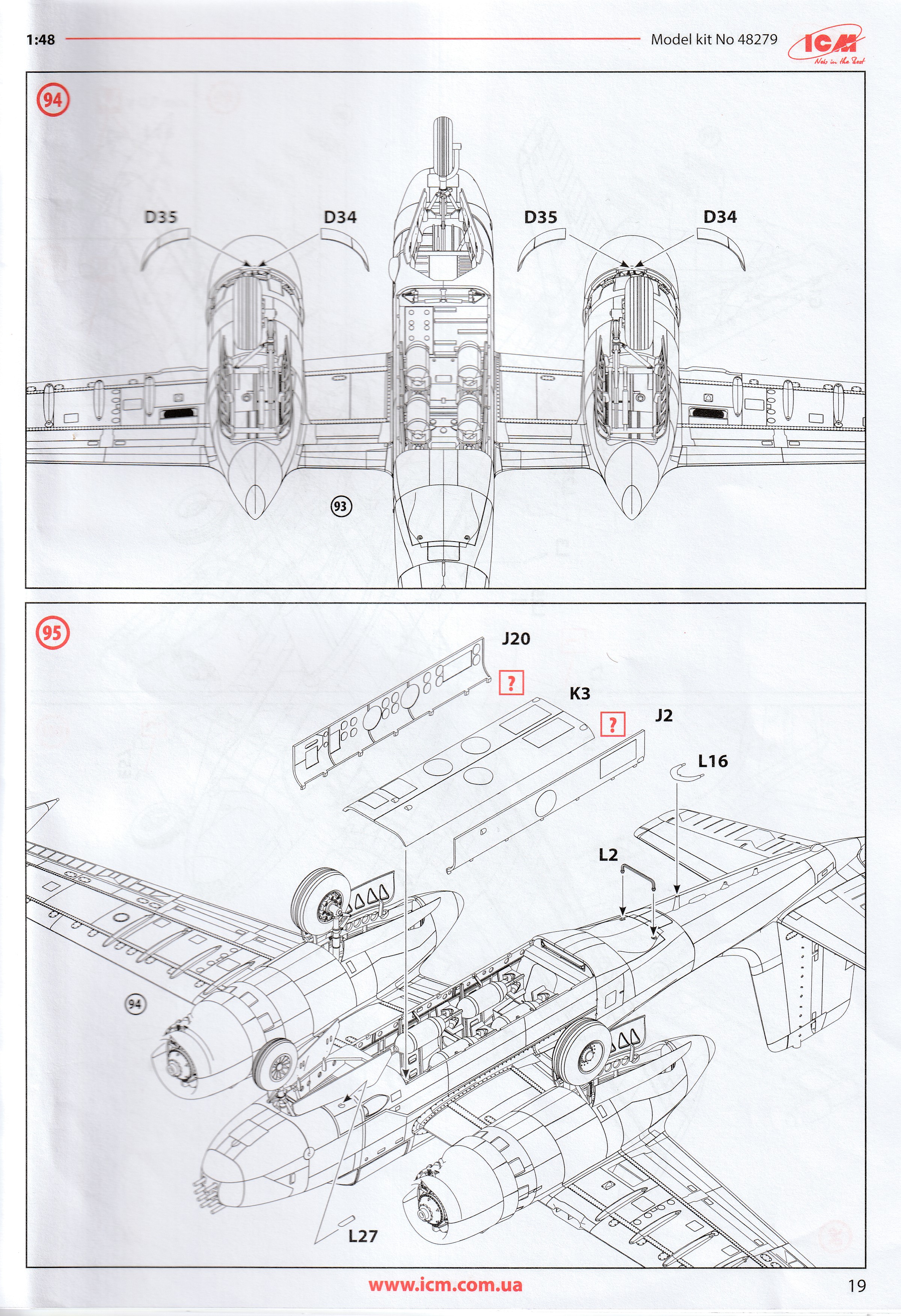 This is the excellent ICM A-26K. it is the only A-26K in 1/48 that can be built without using a conversion kit. Parts are perfectly moulded and are highly detailed. All of the K specific