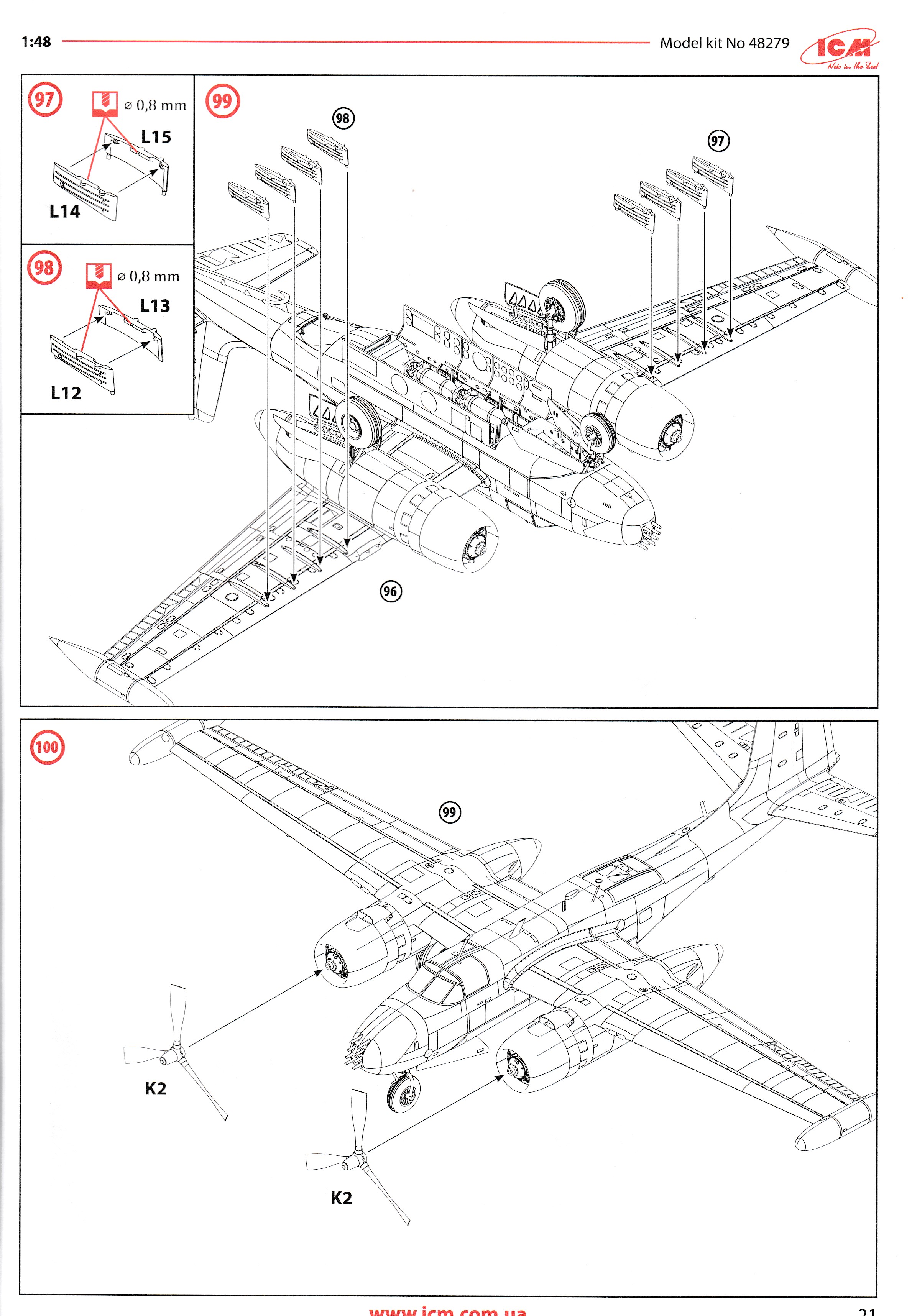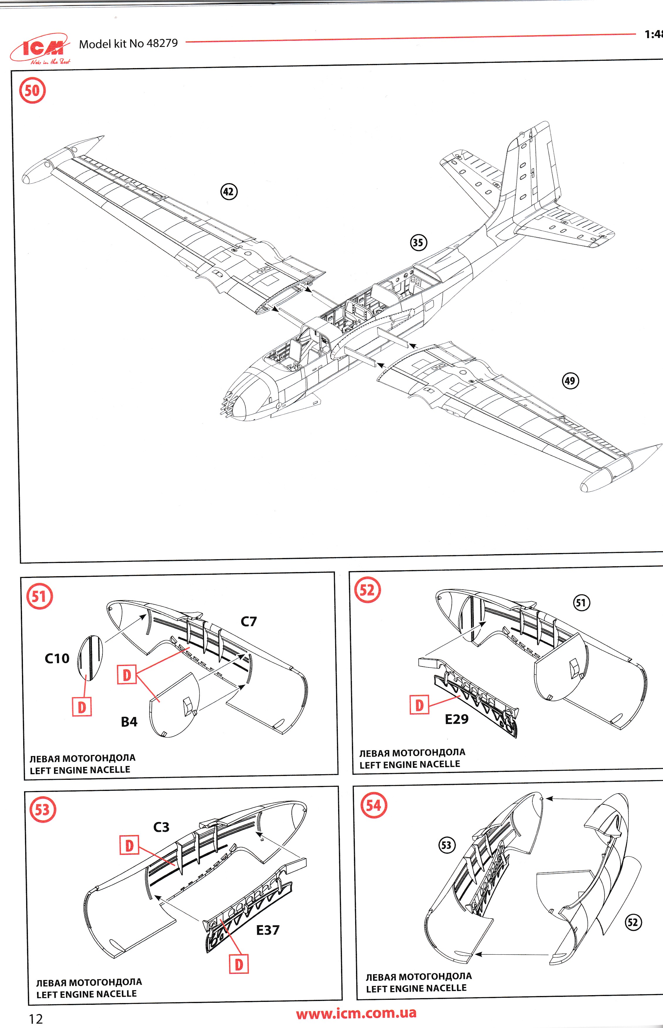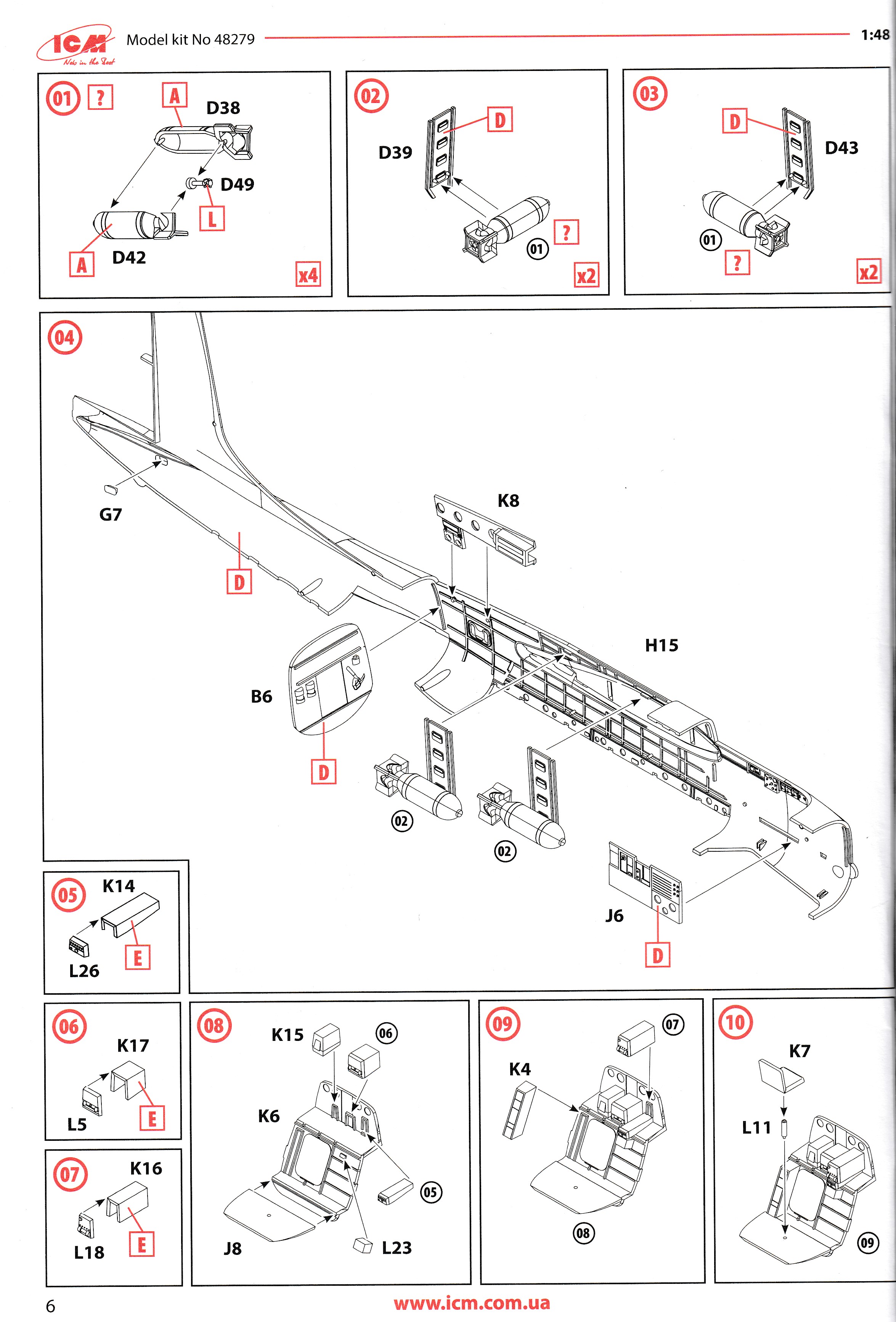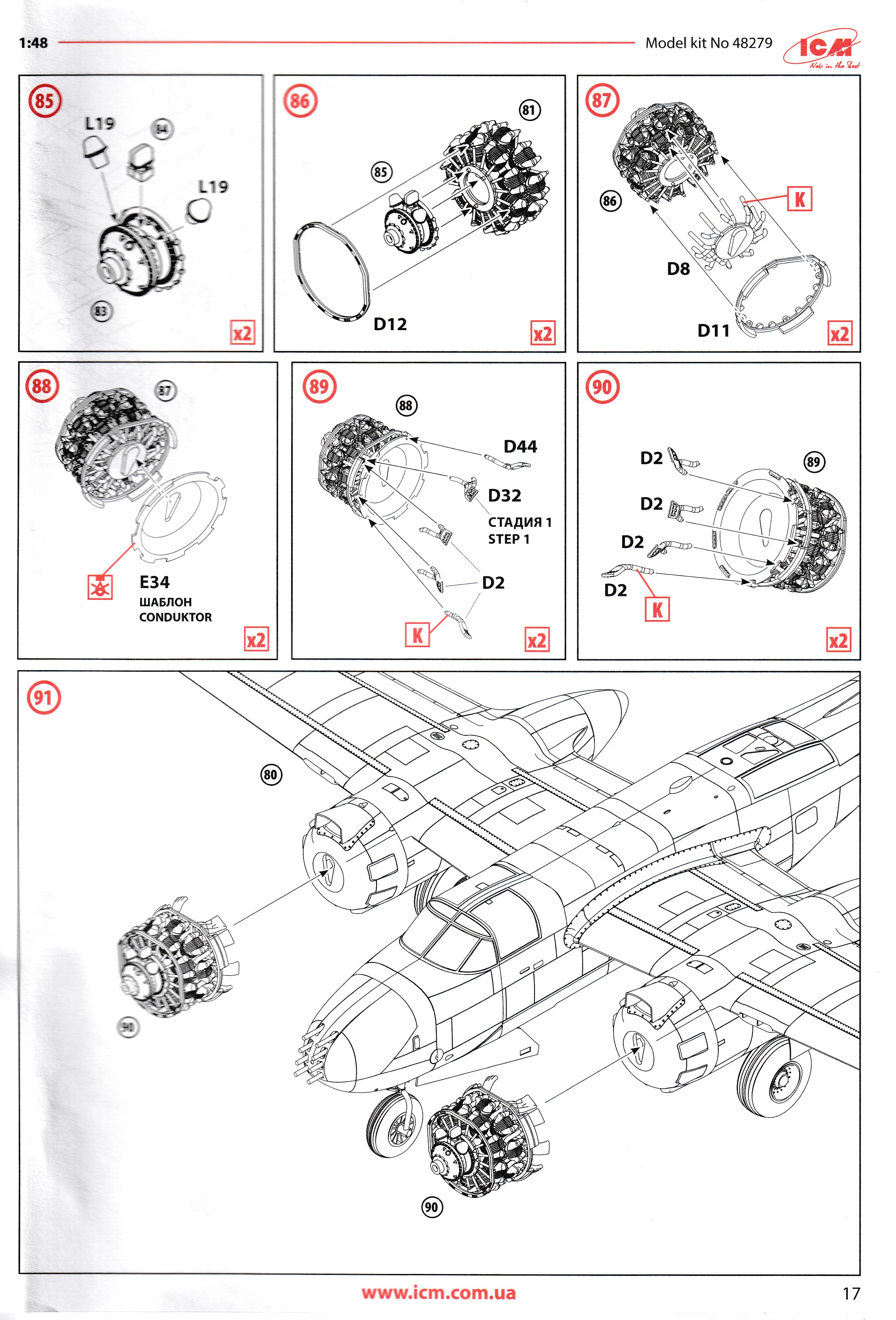 This is the excellent ICM A-26K. it is the only A-26K in 1/48 that can be built without using a conversion kit. Parts are perfectly moulded and are highly detailed. All of the K specific