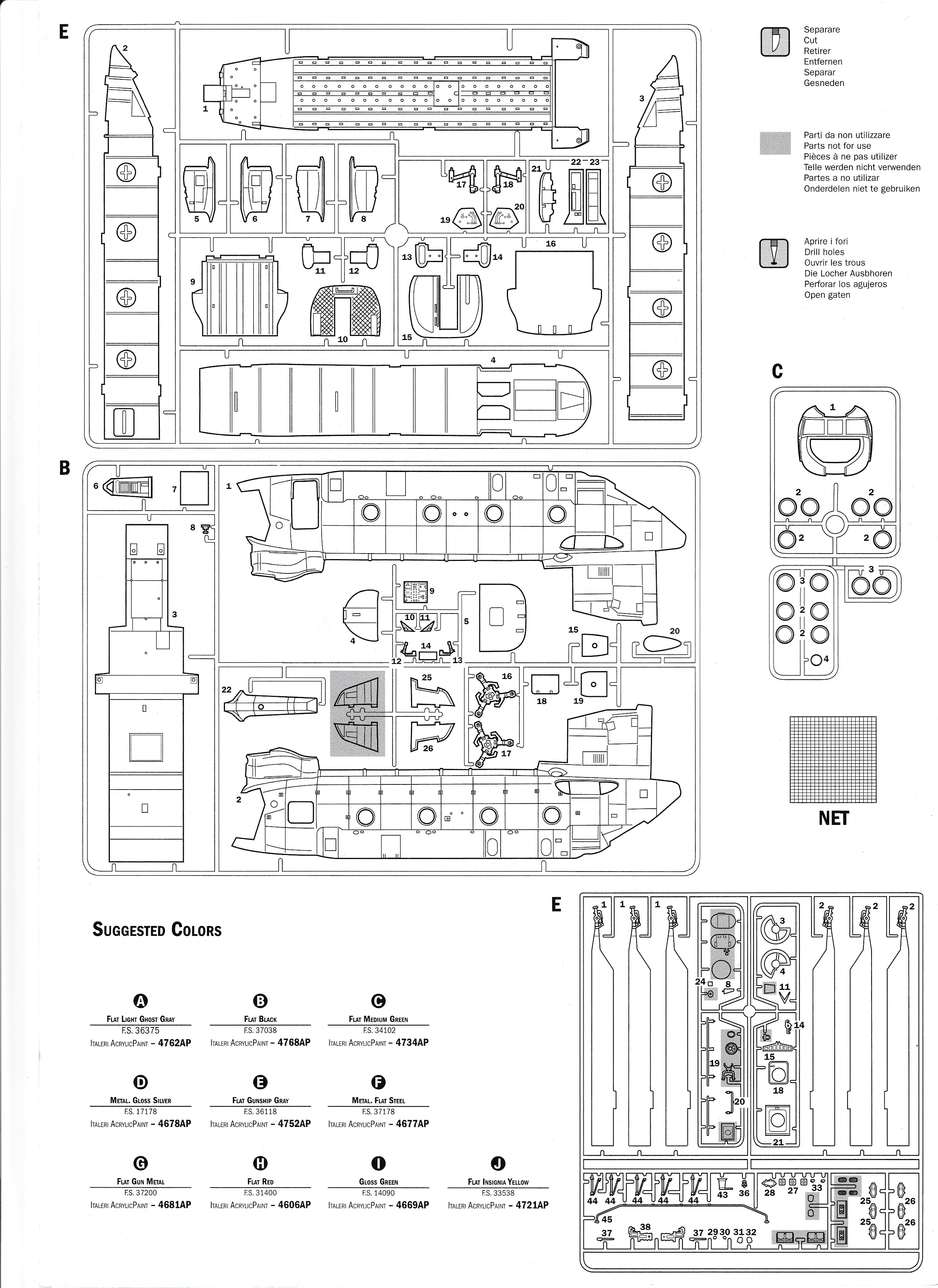 This is the "F" boxing of Italeris great Chinook line of kits. It includes everything you need to make the F as well as the earlier D version, but does not have the larger