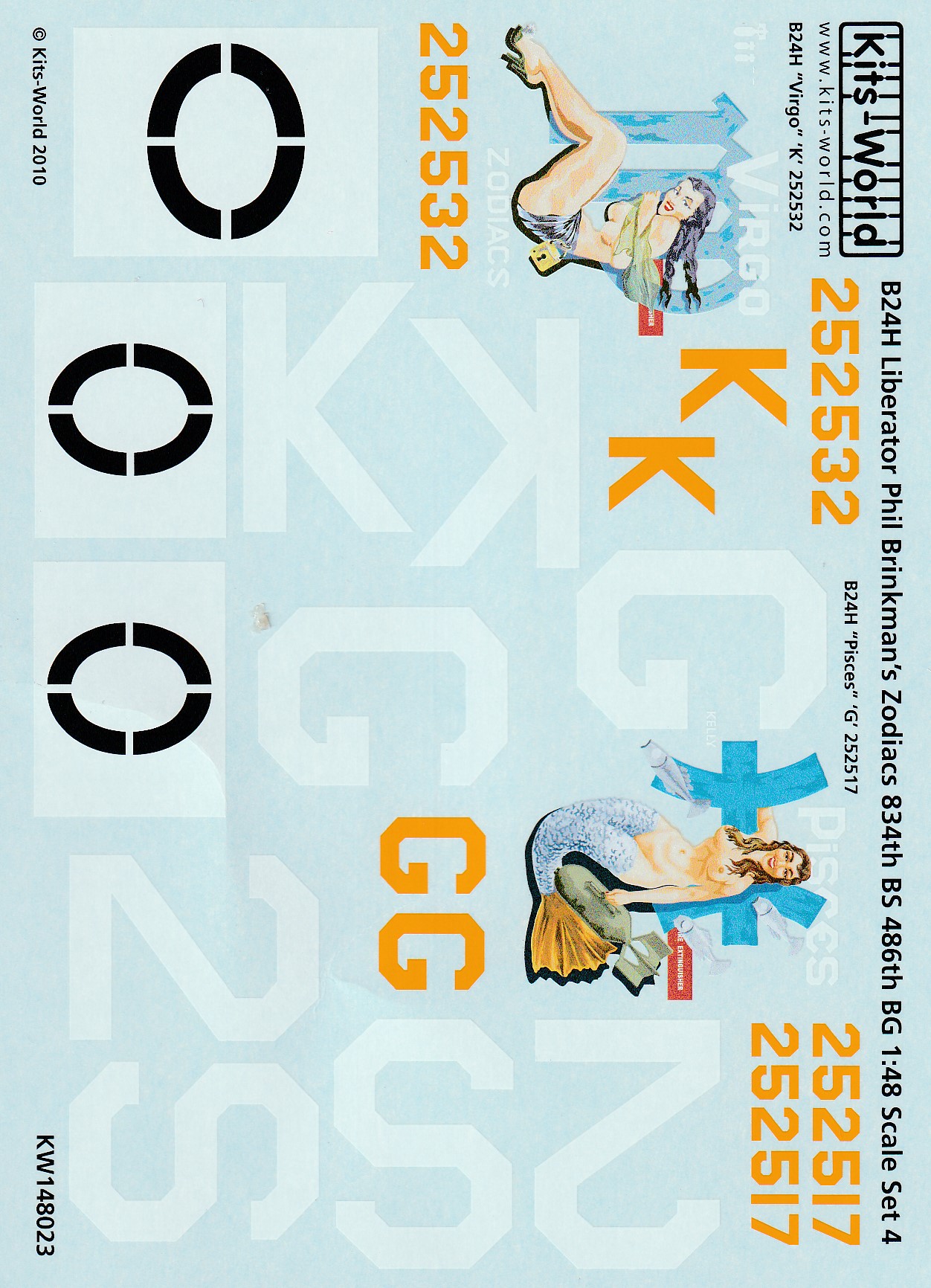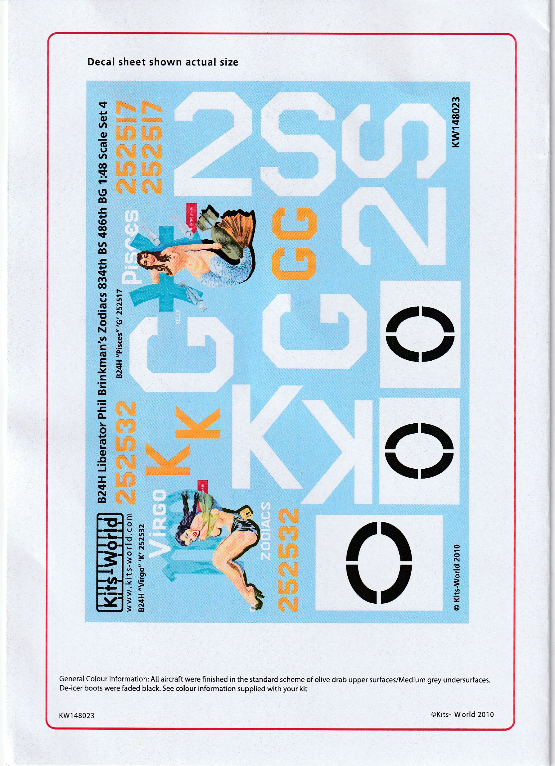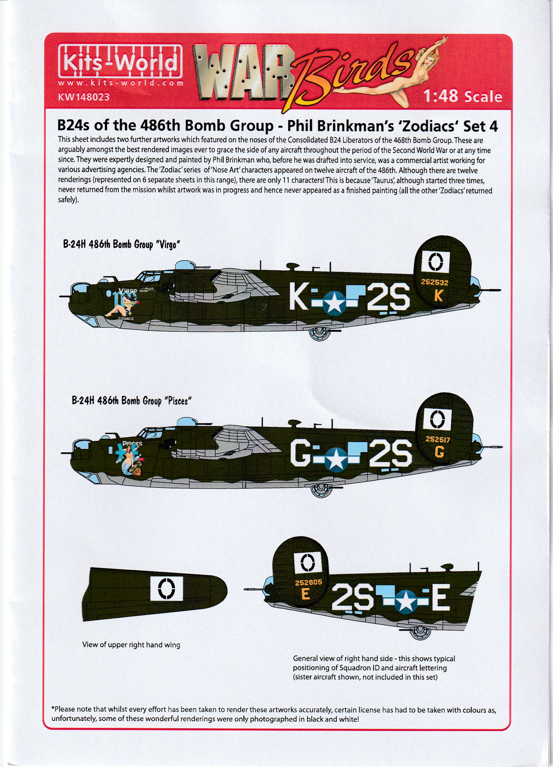 This is the Kits-world decals for the B-24. They are part of the Zodiac series from the 486th BombGroup. There are 11 aircraft in the series and each
