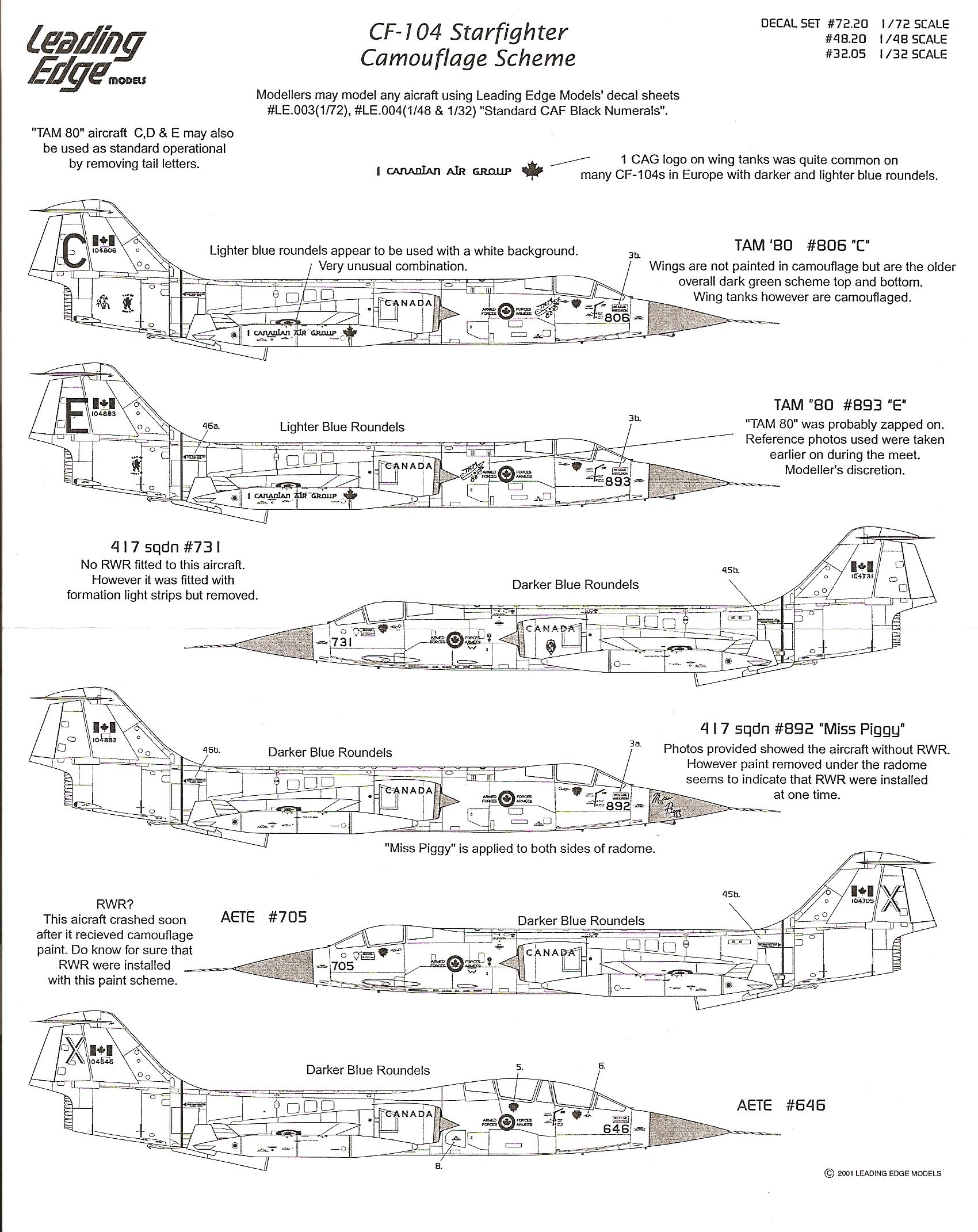 This is decal sheet will allow you to depict CF-104 in the Euro gray-green wrap-around scheme. The decals are very nicely