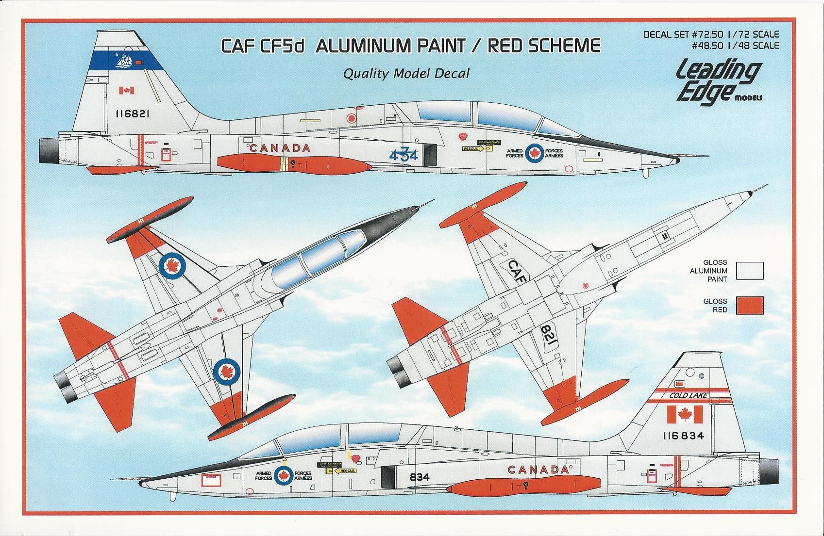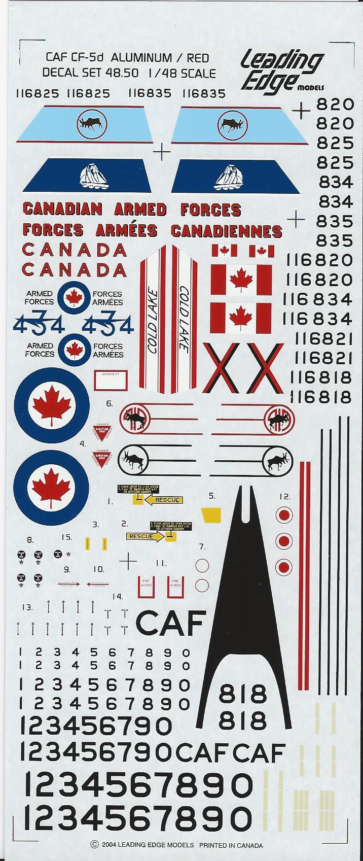 This is decal sheet will allow you to depict a CF-5D in the early Silver scheme. You get one aircraft in the early CAF scheme and the rest in