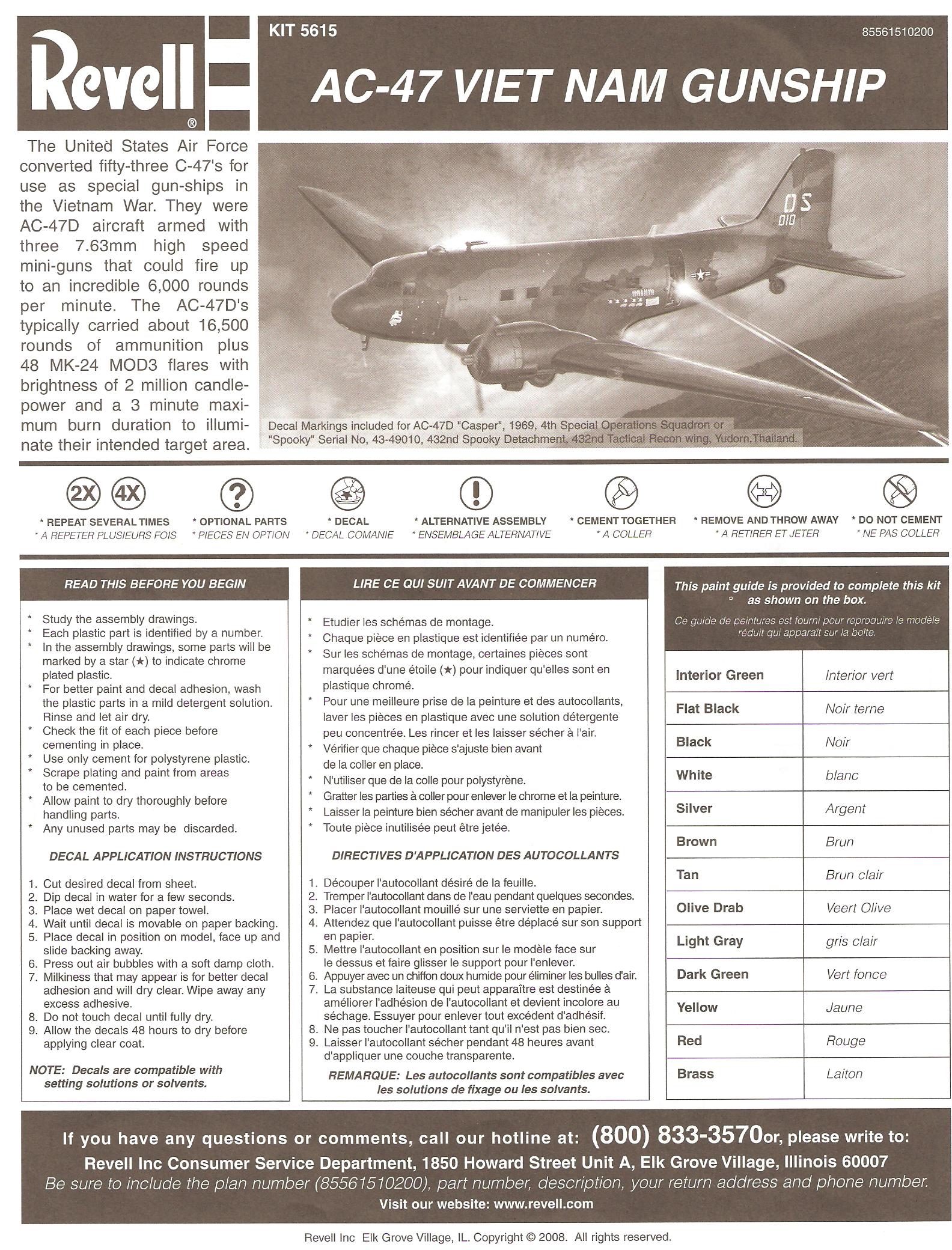 This is a typical monogram offering. average detail, average fit and a finished product that looks like an AC-47. This is a re-pop of the old C-47 with new parts to make the AC-47.