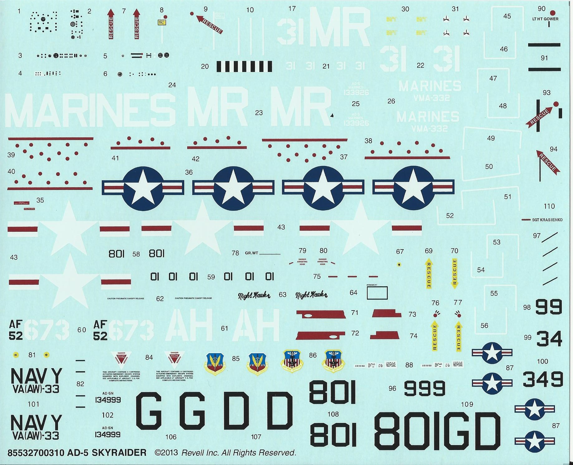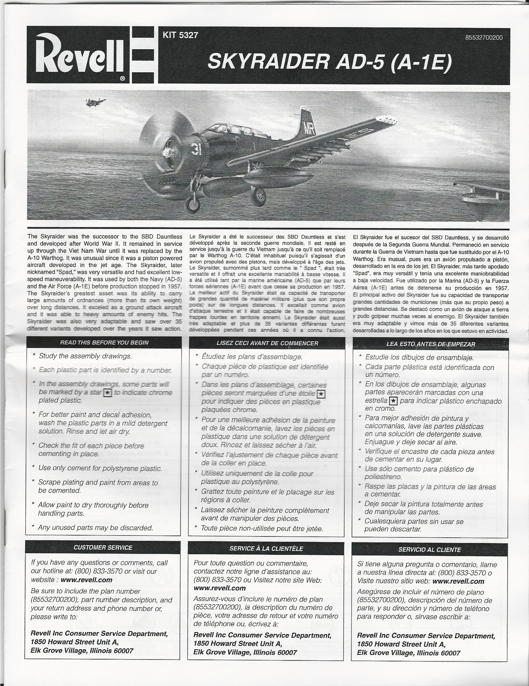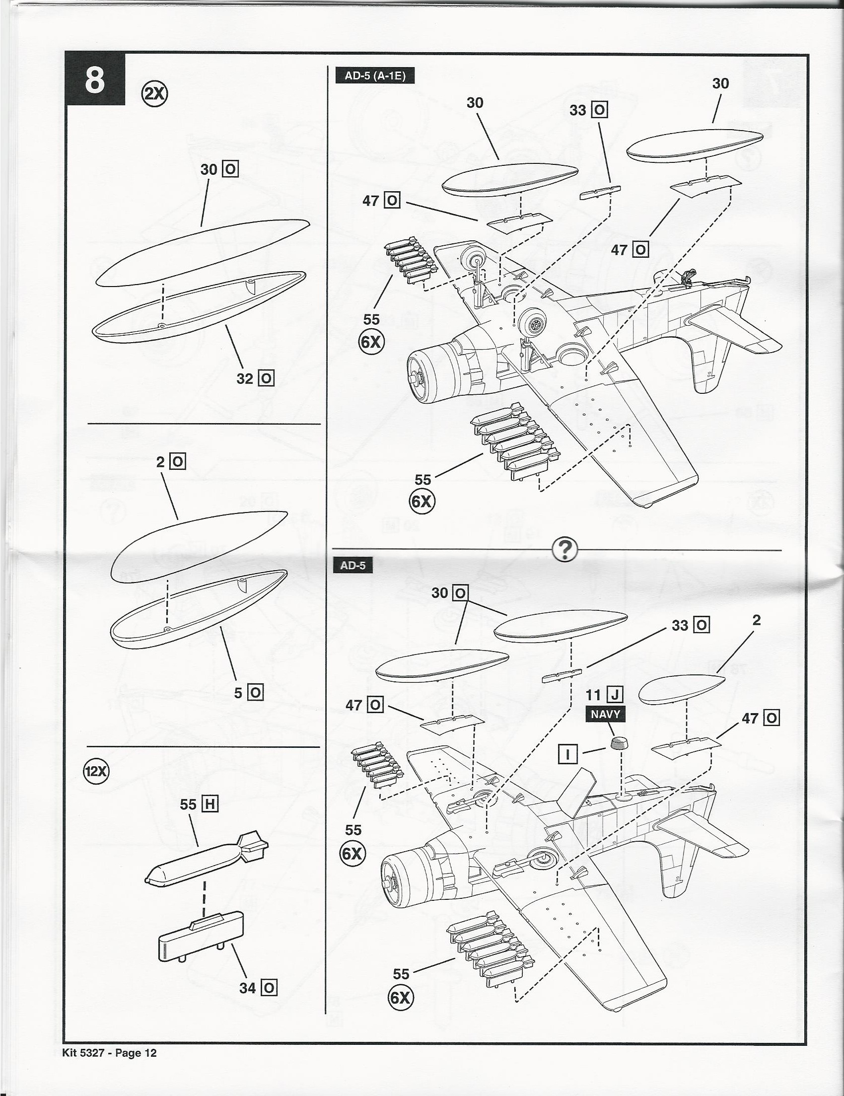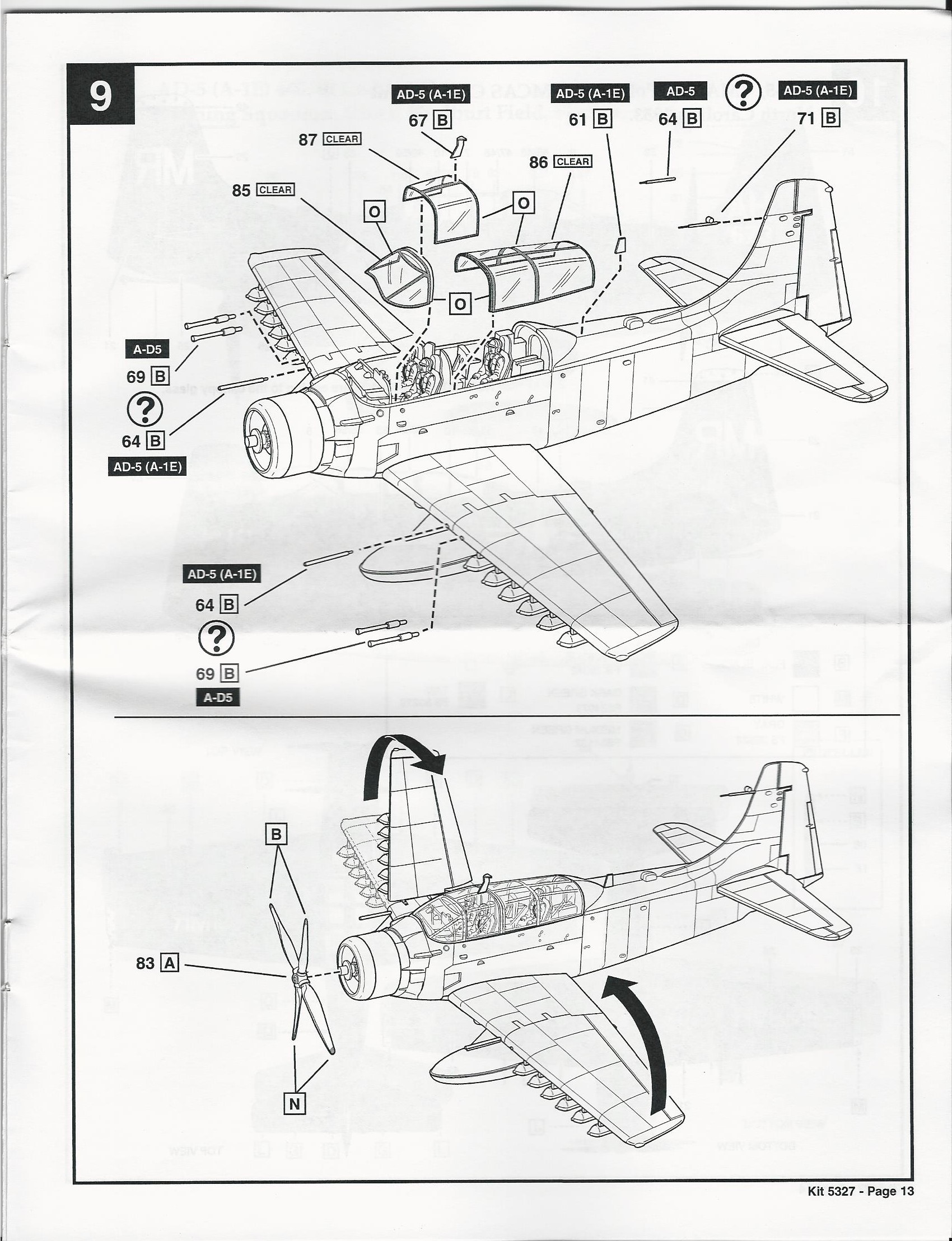 This is a re-pop of the older Matchbox kit. It has modest detail and looks like an A-1E when it is finished. The wing folds, wheel wells and landing gear are very crude