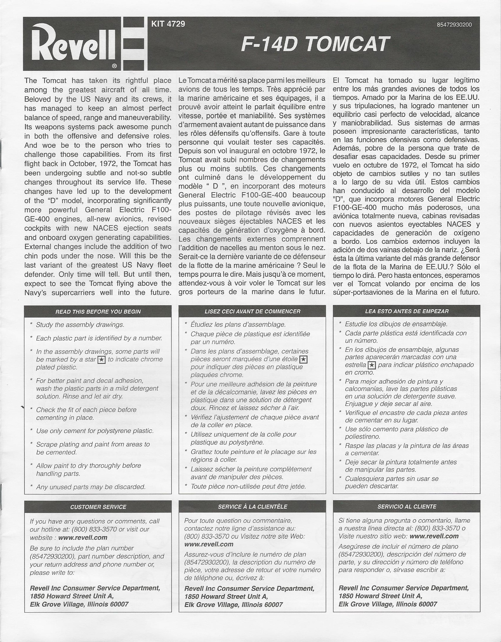 This is an older Revell USA kit. It has modest detail and looks like an F-14 when it is finished. It includes moveable wings, two AIm-7's