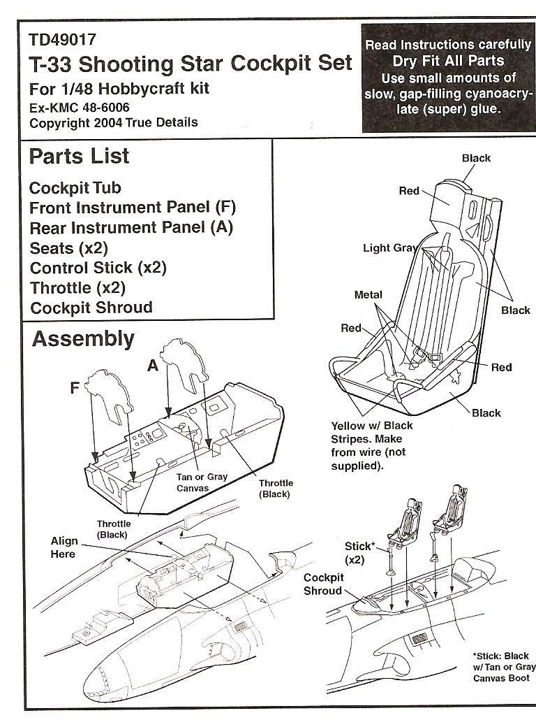 This is a cockpit set for the Academy T-33. It is nicely cast in Beige resin and has crisp detail.