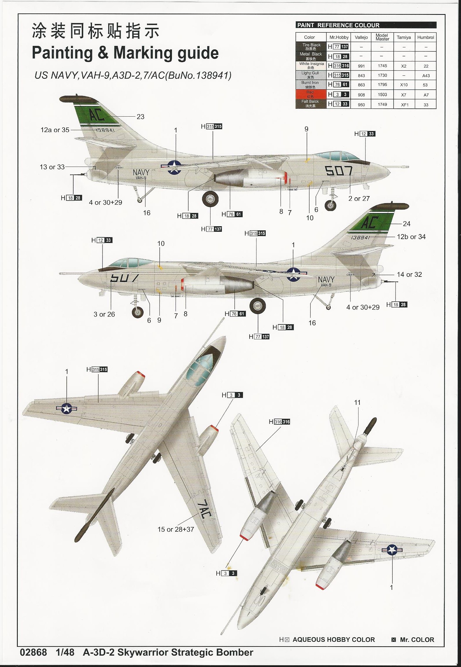This is the only injection moulded 1/48 kit of the A-3D available. It has nice detail but Suffers from some accuracy issues. From what I can gather