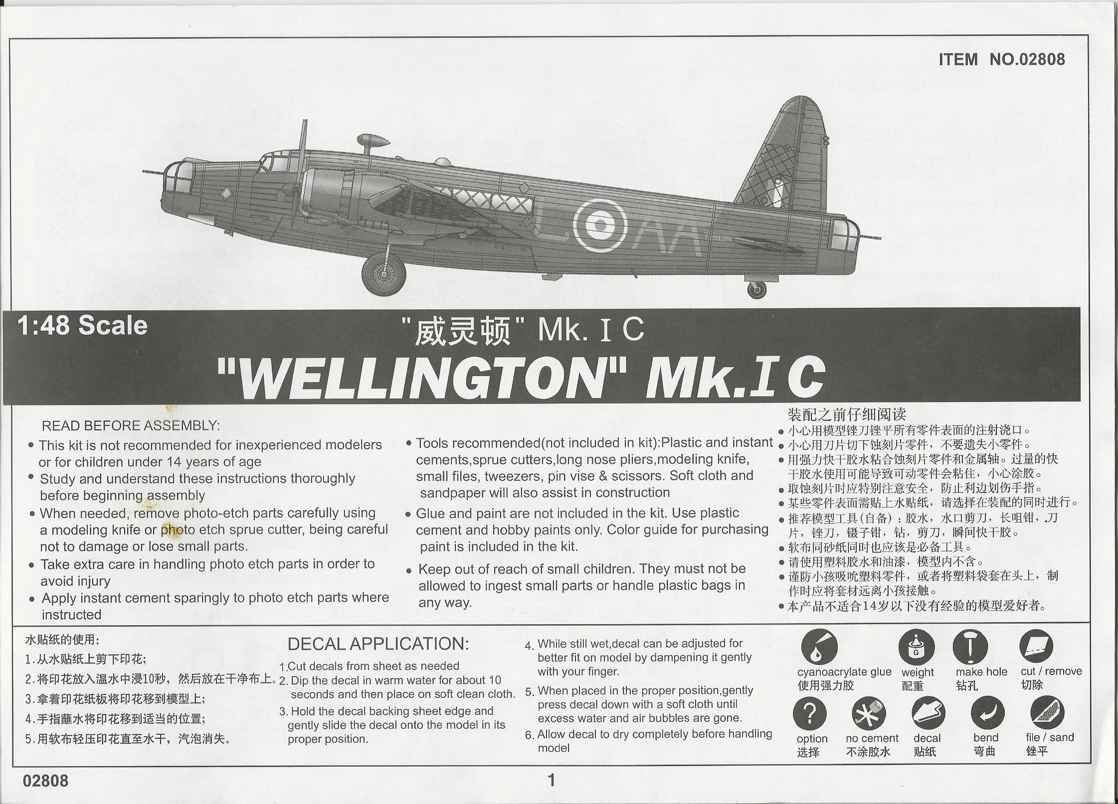This is the only injection moulded 1/48 kit of the Wellington available. It has nice detail but may suffer from overly exaggerated fabric detail on the wings. You get a fully