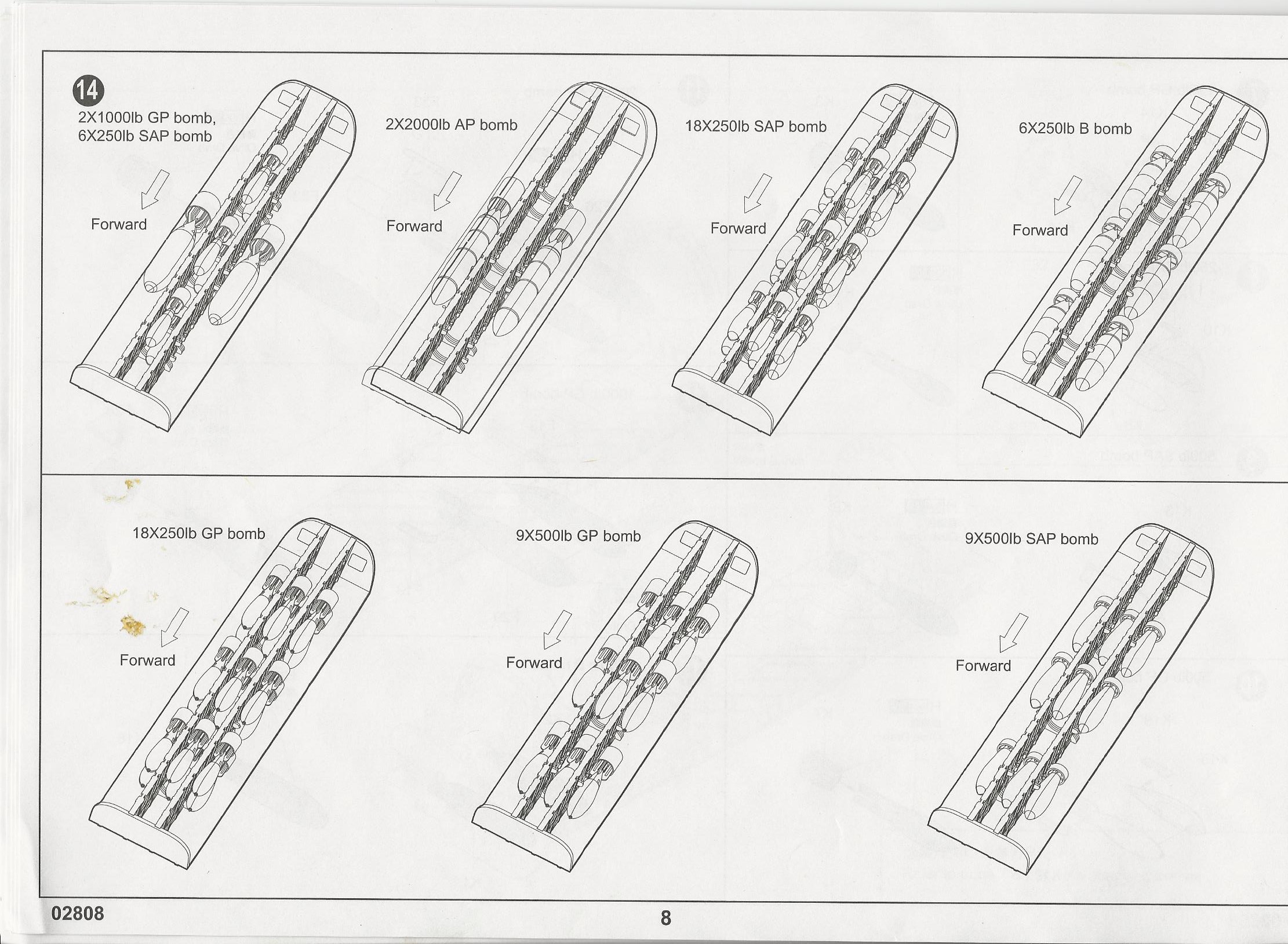 Included bombs are: 250lb GP, 250lb SAP, 250lb B, 500lb GP, 500lb SAP, 1000lb GP and 2000lb AP