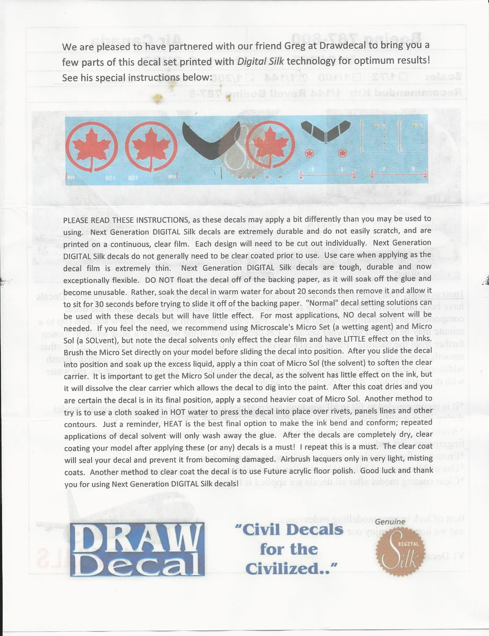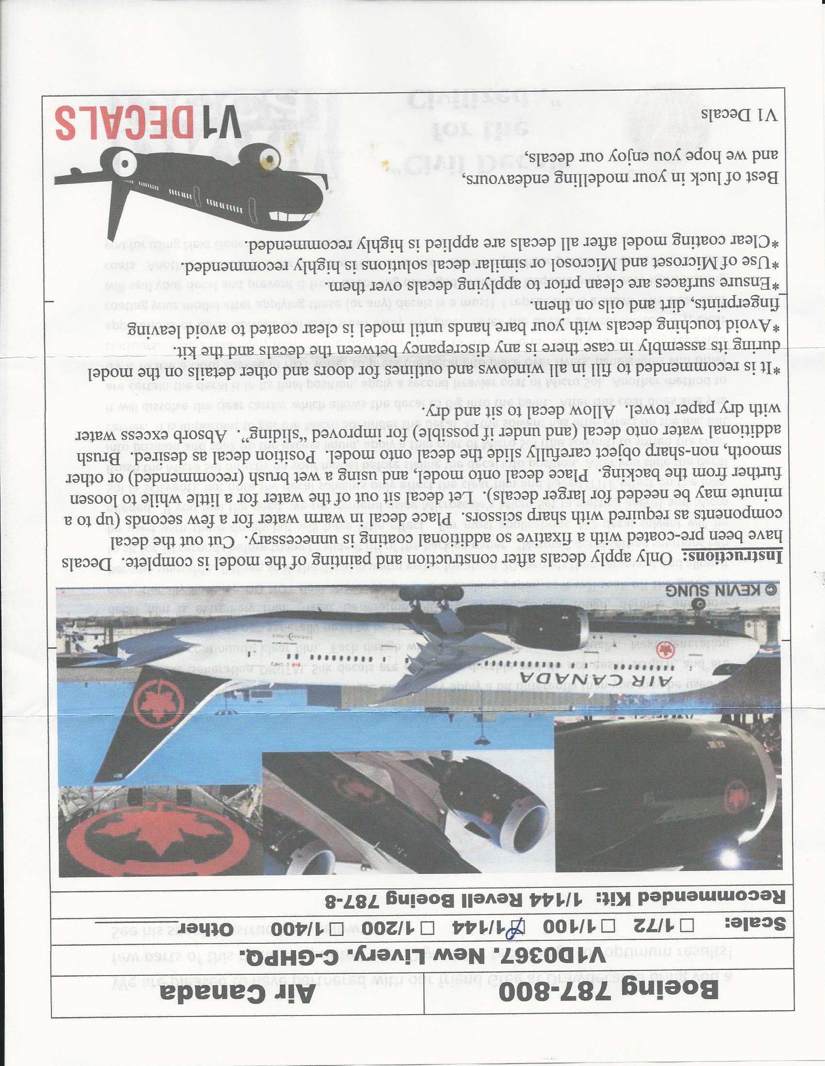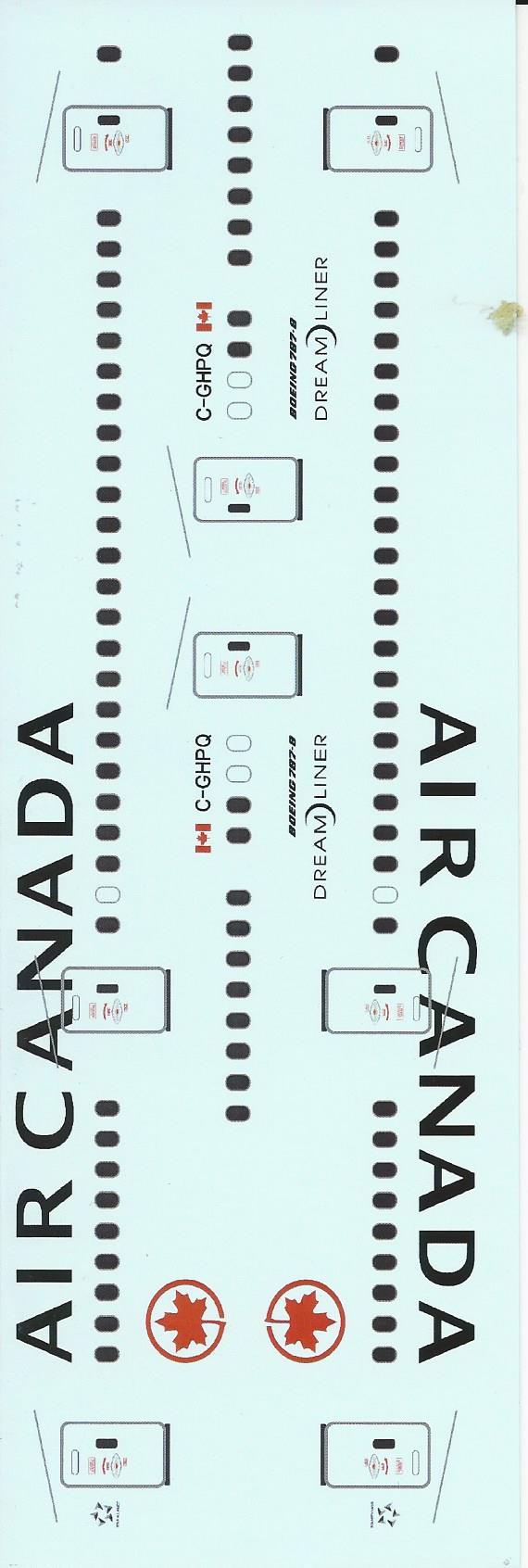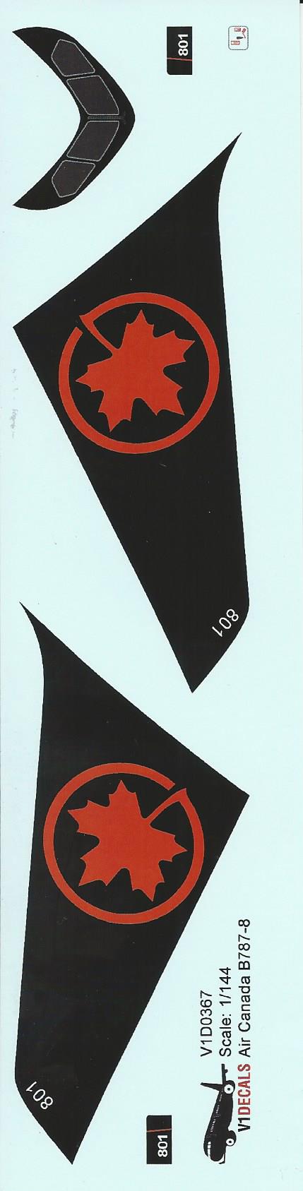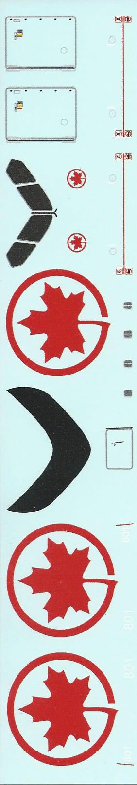This is the set for the Air Canada new livery Boeing 787. It is beautifully printed and you get both a full tail red on black with white lettering as well as an