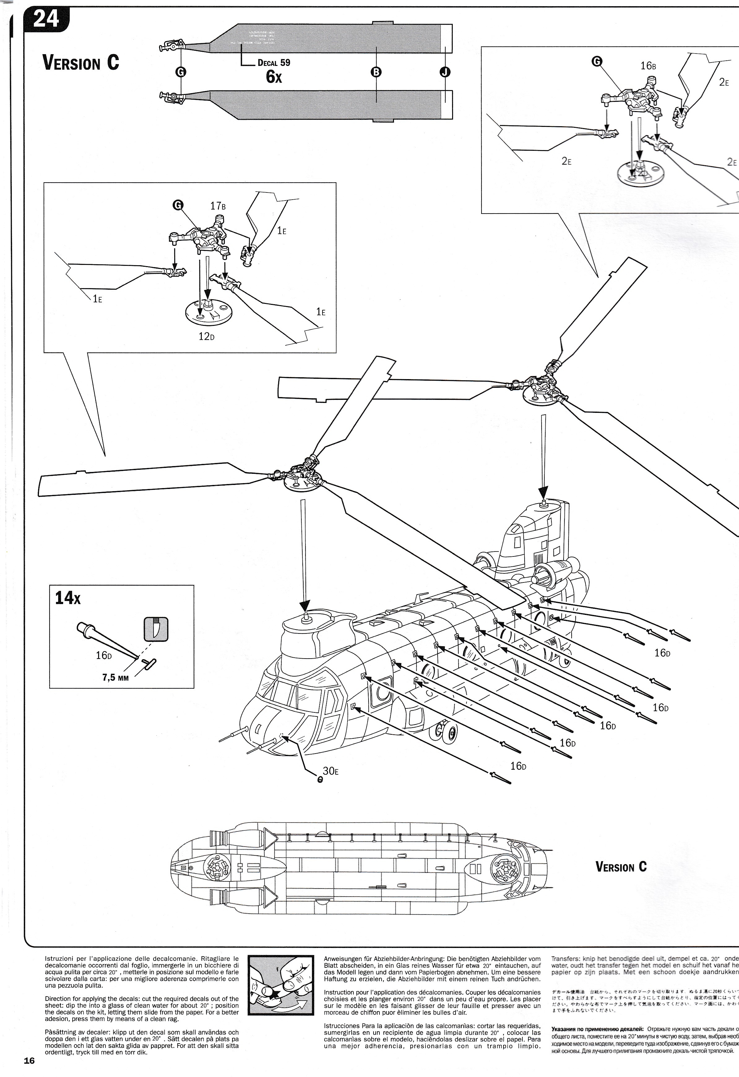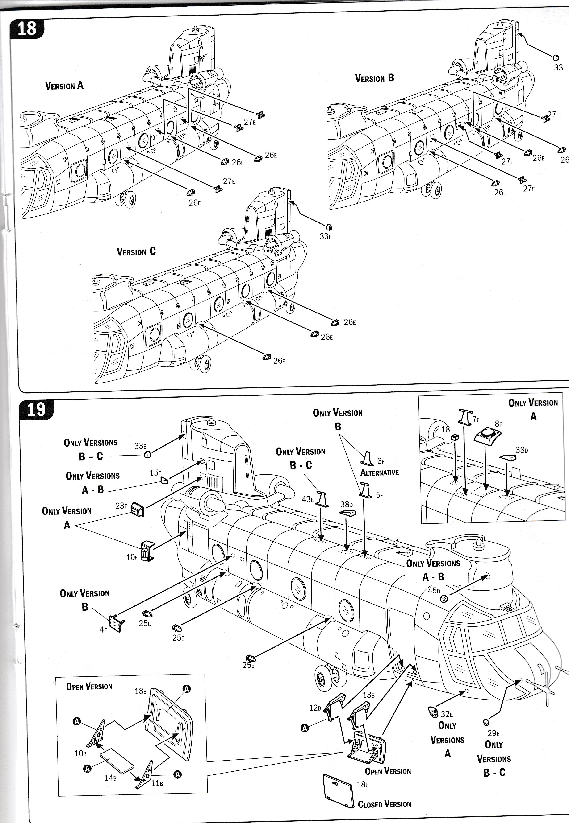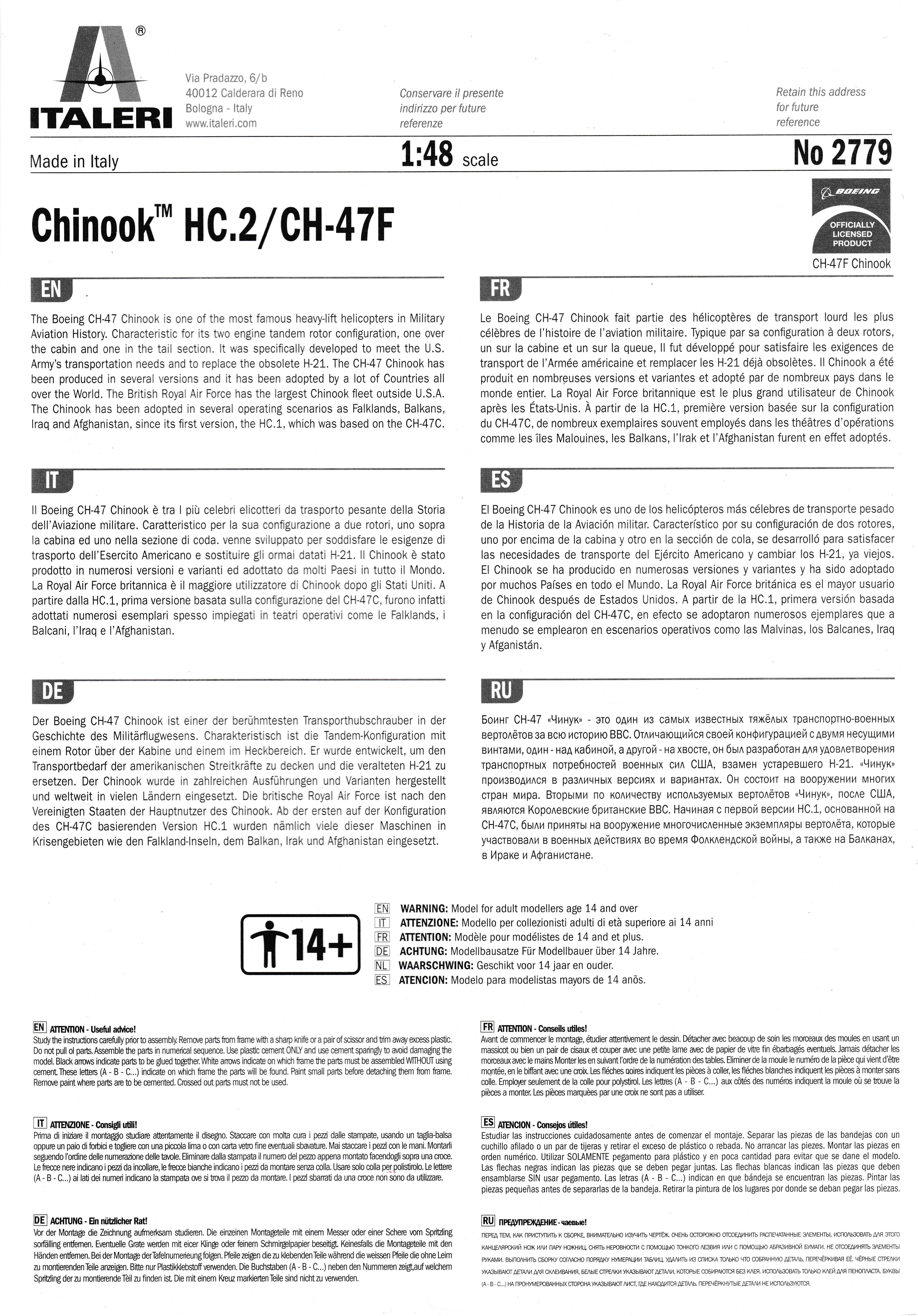 This is the "F" boxing of Italeris great Chinook line of kits. It includes everything you need to make the F as well as the earlier D version, but does not have the larger